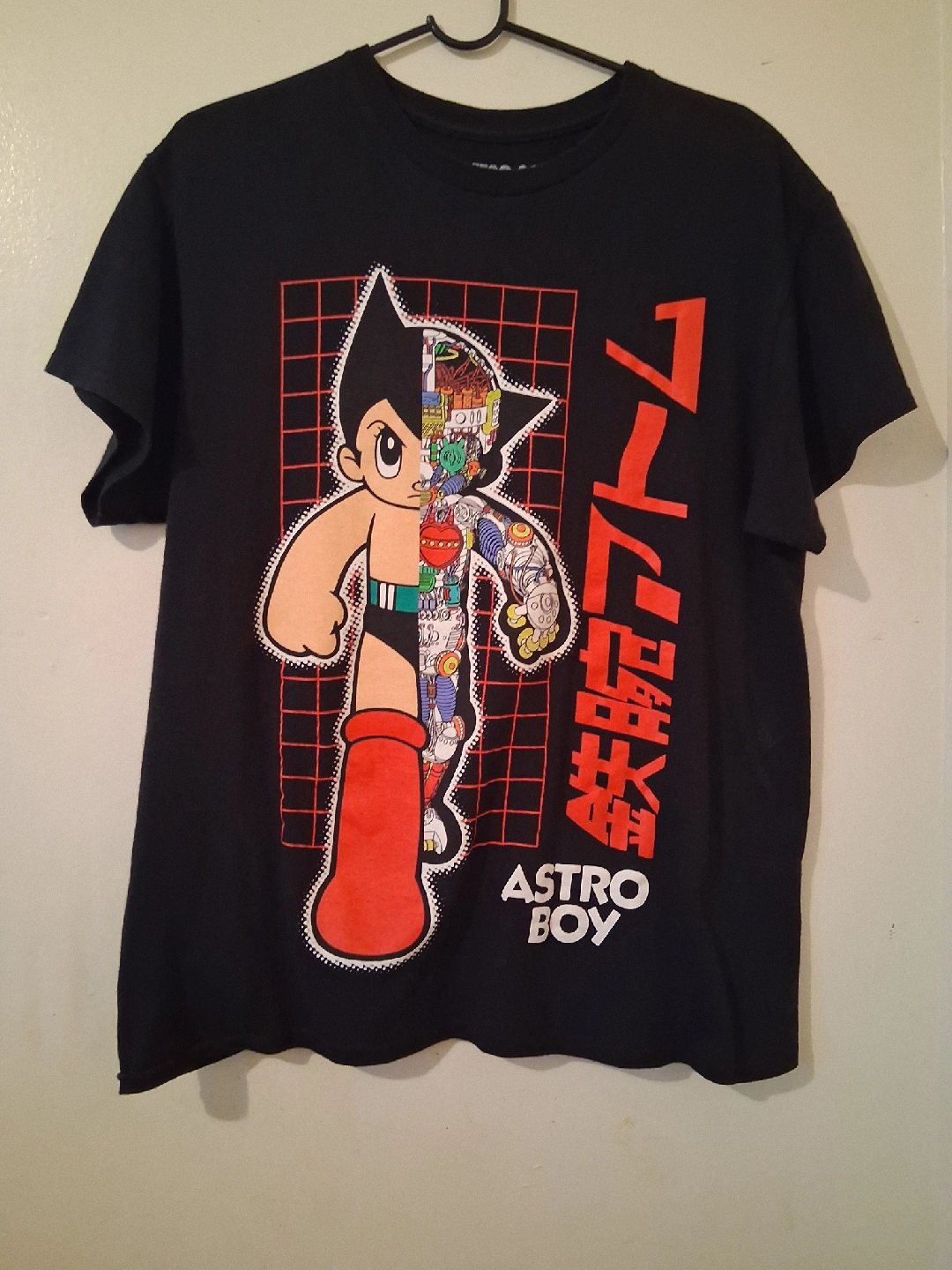 Selling a black Astro Boy t-shirt in size M. It's made of 100% cotton and features a cool graphic print of Astro Boy. Great for any fan of the classic anime. open for trades.
