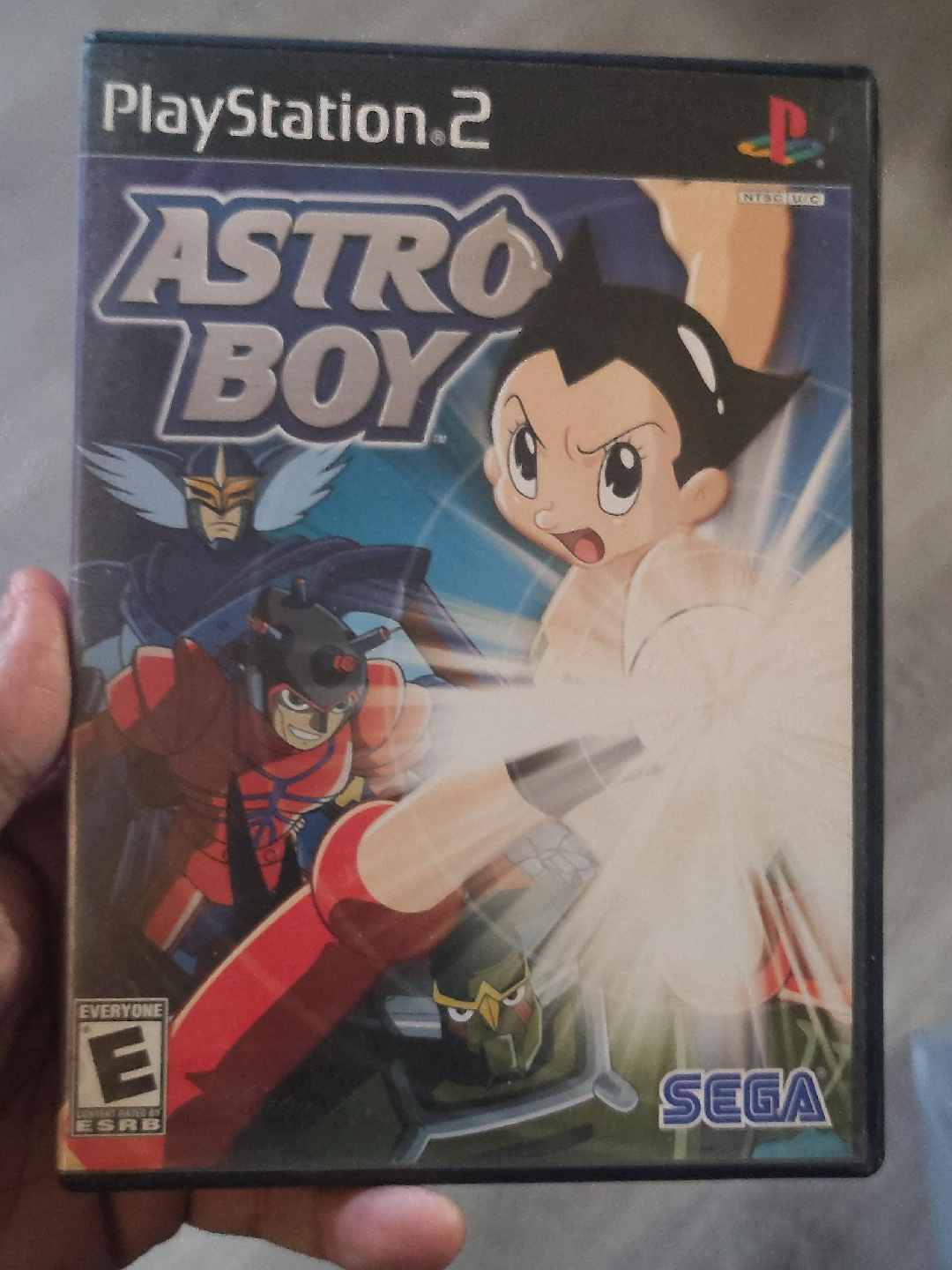Selling Astro Boy for the PlayStation 2! This game is rated E for Everyone by the ESRB and published by SEGA. Get ready to fight for justice in Metro City with Astro, the robotic superhero!