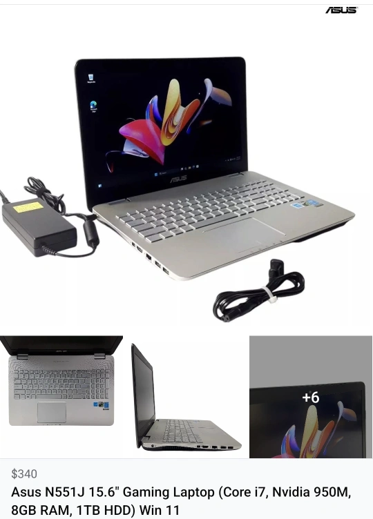 Hello! You Can Buy With Confidence. I'm a Highly Rated/Trusted 5-Star Seller KENDOTRONICS. READ MY 3000+ GLOWING REVIEWS! See Kendotronics dotcom. All products are tested and come with a 14-day warranty! **more pictures available upon request** Asus N551J 15.6″ Gaming Laptop (Core i7, Nvidia 950M, 8GB RAM, 1TB HDD) Win 11 WORKING BATTERY & CHARGER IS INCLUDED! The Asus N551J 15.6" Laptop is a powerful device featuring an Intel Core i7-4720HQ processor, 8GB of RAM, and a 1TB HDD for ample storage space. With a stunning 1920 x 1080 resolution on a 15.6-inch screen, this laptop is ideal for casual computing and gaming. It comes equipped with Intel HD Graphics 4600 and NVIDIA GeForce GTX 950M GPU for smooth graphics performance Brand ASUS Series Asus Model Asus N551J Processor Intel Core i7-4720HQ Screen Size 15.6 in RAM Size 8 GB Hard Drive Capacity 1 TB Most Suitable For Casual Computing, Gaming GPU Intel HD Graphics 4600; NVIDIA GeForce GTX 950M Processor Speed 2.60 GHz Connectivity Gigabit Ethernet, Mini DisplayPort, HDMI, USB 3.0 Features Bluetooth, Built-in Webcam, Optical Drive, Wi-Fi 23WE14523204UU