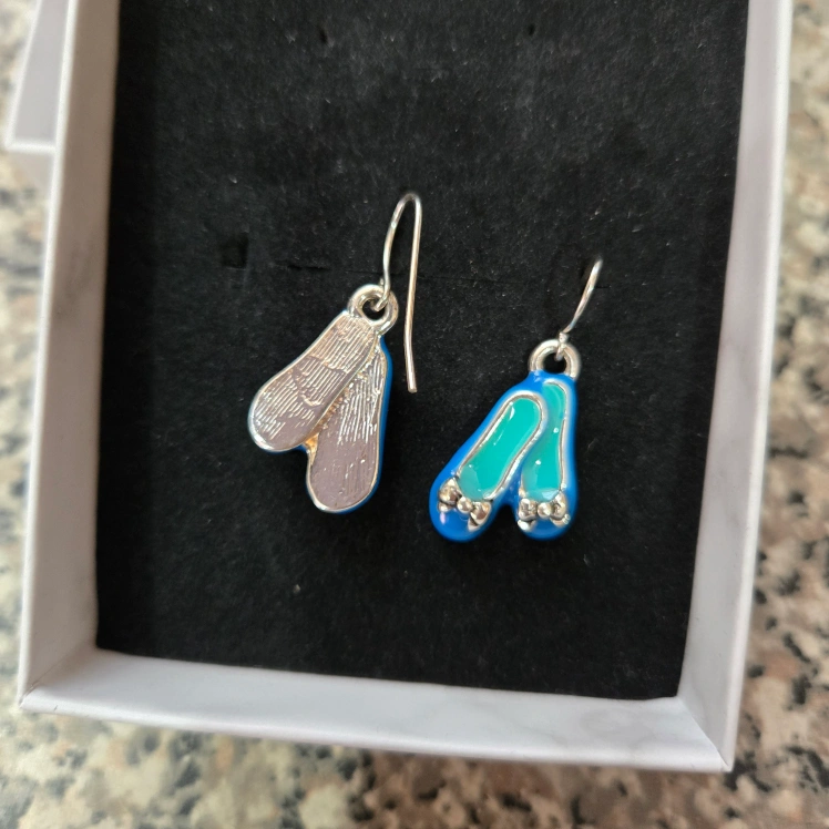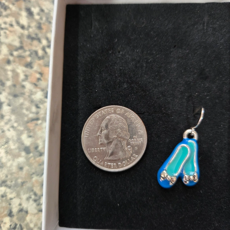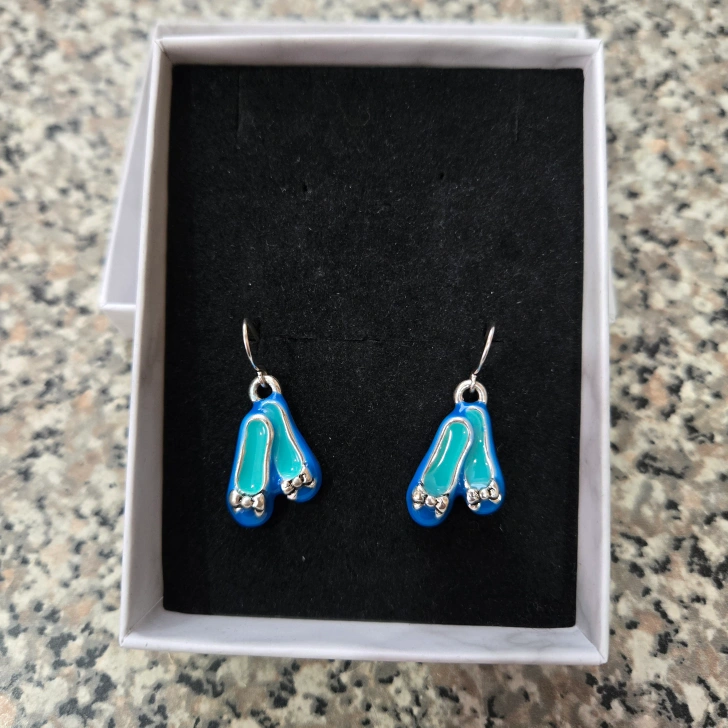 Add a touch of femininity to your everyday outfit with these charming blue flats shoe earrings. The unique design features a delicate shoe shape with a bow charm dangle drop, perfect for any occasion, whether you're going to the beach or just teaching. These earrings are lightweight and comfortable for all-day wear. The earrings are perfect for those who love fashion and enjoy adding a unique touch of fun to their outfits.