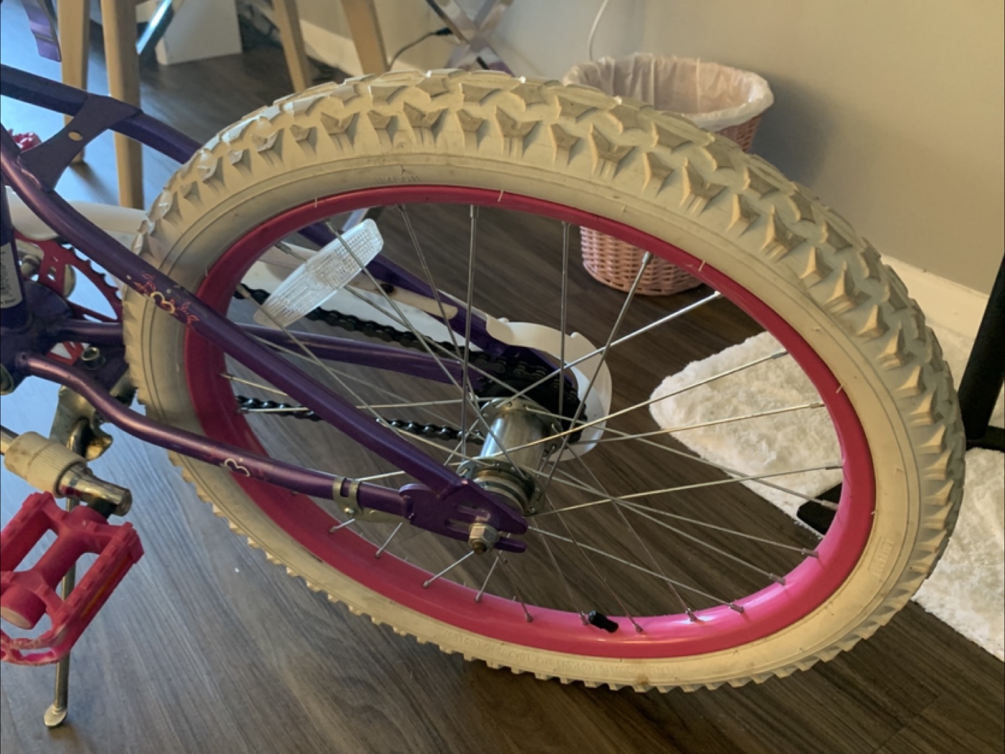 Giving away for free a cute (it’s a 20” I believe) Huffy Seastar girls bike in purple and pink! It's perfect for a young rider. The bike has some wear and tear, but it's still in good working condition. Tires are great and inflated. Streamers missing. No training wheels. $98 at Walmart. See wear sections in pictures.