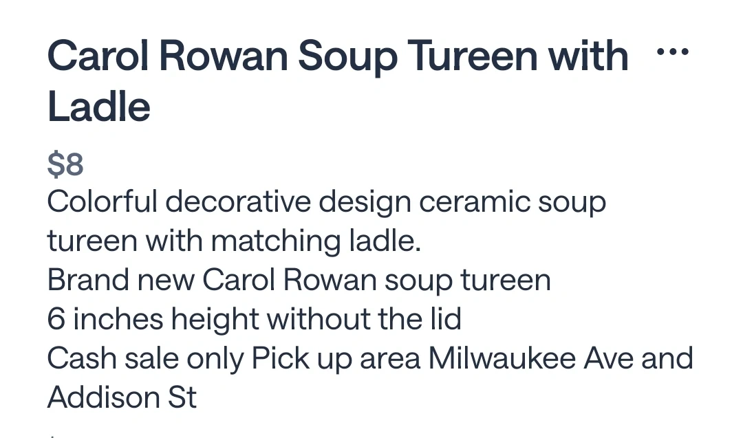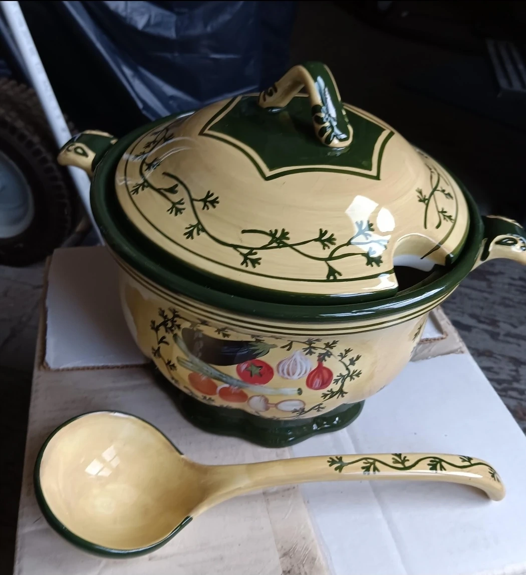 Carol Rowan Ceramic Soup Tureen with Ladle. "#cleanout"