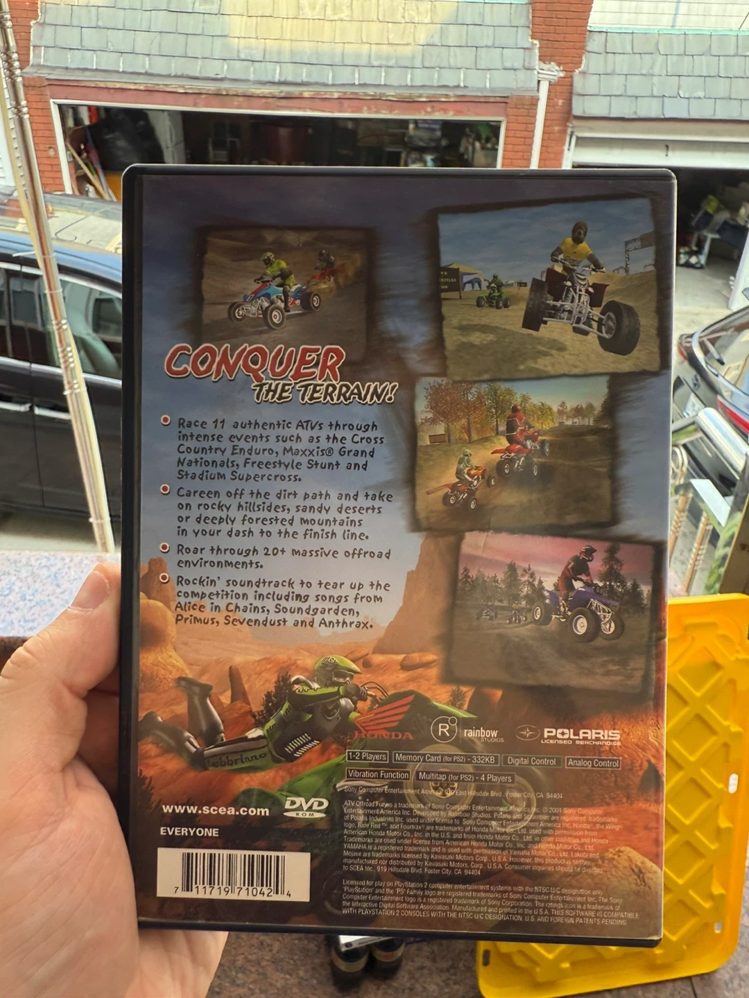 Selling a copy of ATV Offroad Fury for the PlayStation 2! It's in great condition and ready for a new owner to enjoy some off-road racing action. Race 11 authentic ATVs through diverse terrains, careen off the dirt path, and rockin' soundtrack to tear up the competition. Have not tested.
