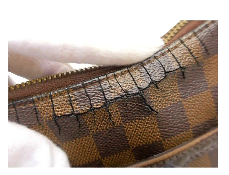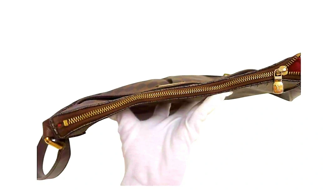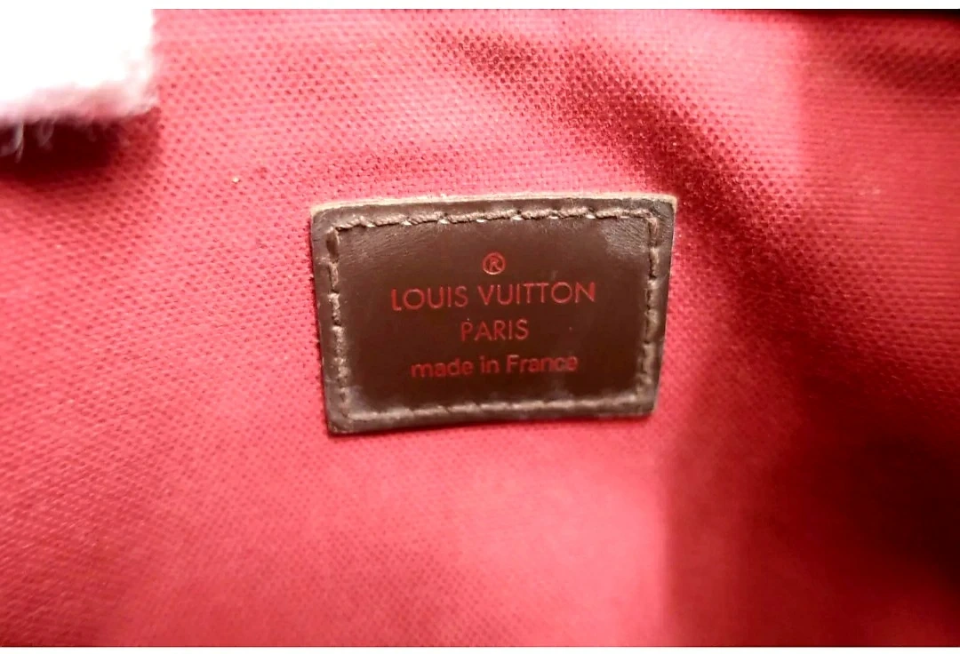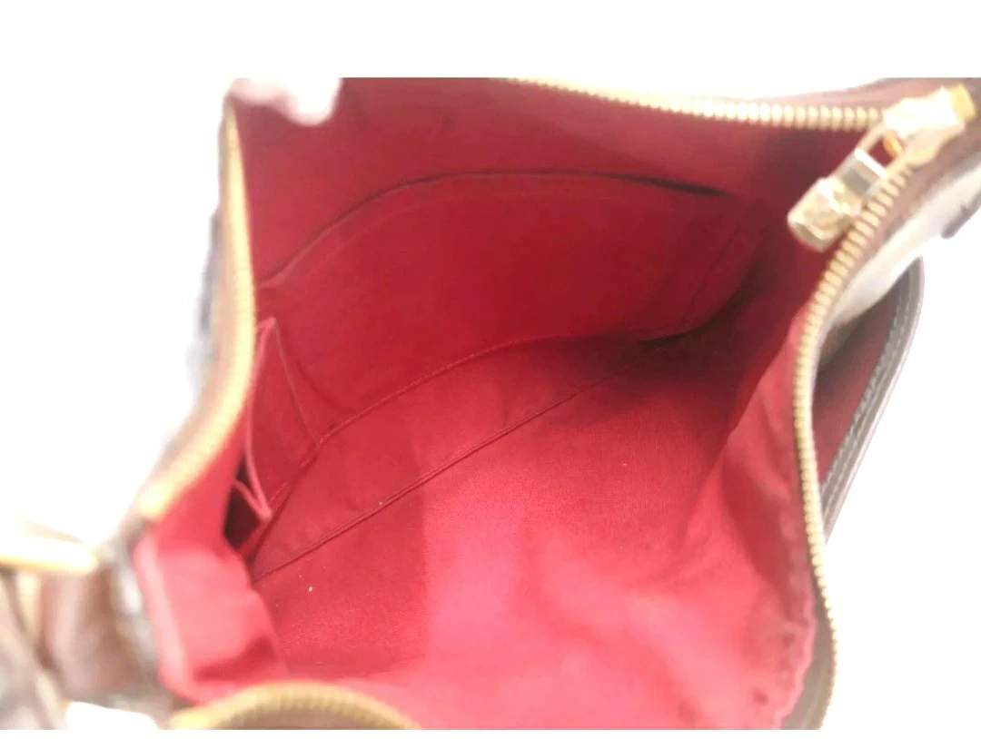 95Pre-owned Louis Vuitton shoulder bag. Damier Azur canvas. Red interior. Adjustable strap. Zip closure. Small pocket inside.