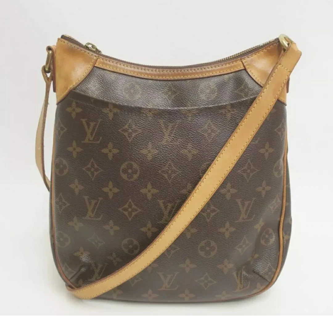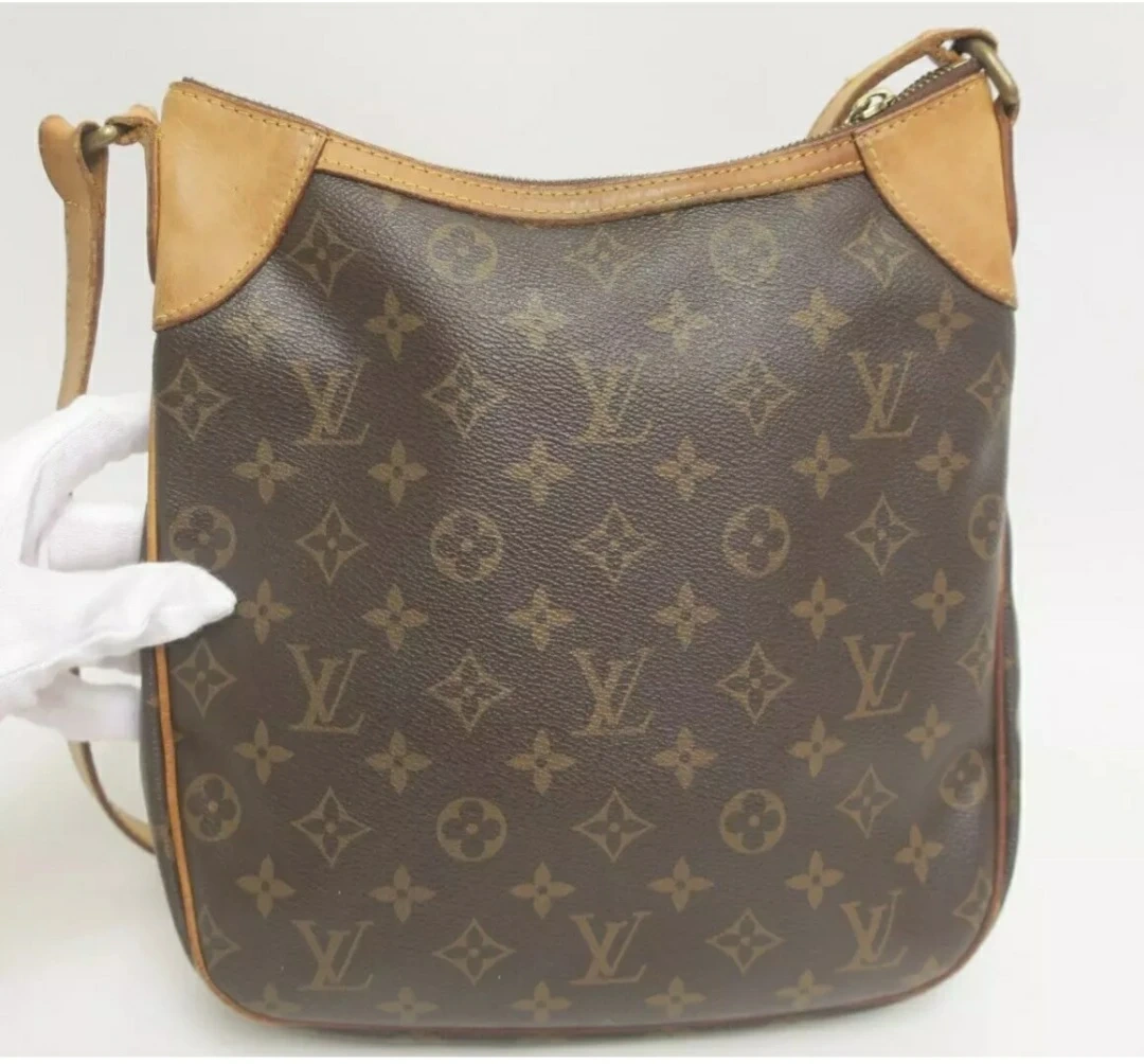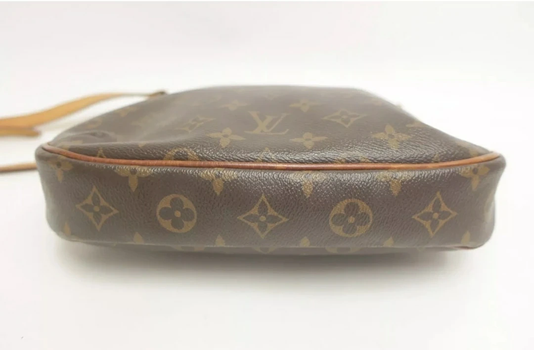 95Pre-owned Louis Vuitton crossbody bag. Monogram canvas with brown leather accents and a top zipper closure.