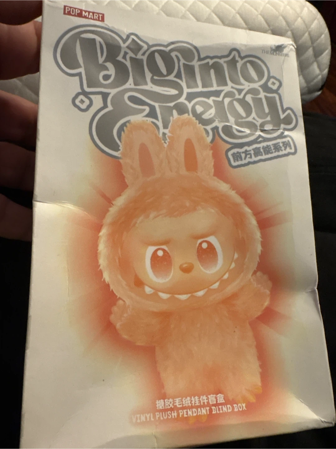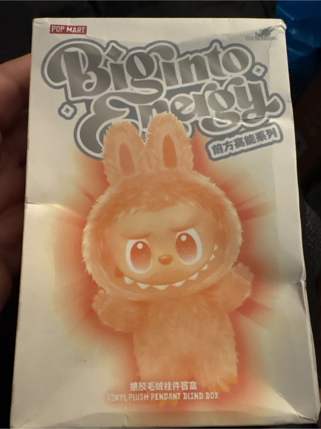 Selling a Pop Mart Biginto Energy Vinyl Plush Pendant Blind Box. It's suitable for ages 15 and up. This blind box contains a random plush pendant from The Monsters series. The package contains important information, so please keep it for further use