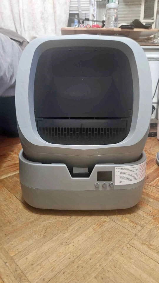 60Automatic electric litter box, good for cats up to 20 lbs! Tested with clean non clumping litter to verify it works. You can scan the QR code on the bottom mount for access to the app. - Comes with a roll of small trash bags, big enough to fit the litter box in the back of the upper mount. - 2 brush sets, one with dust pan And - 12 V power supply