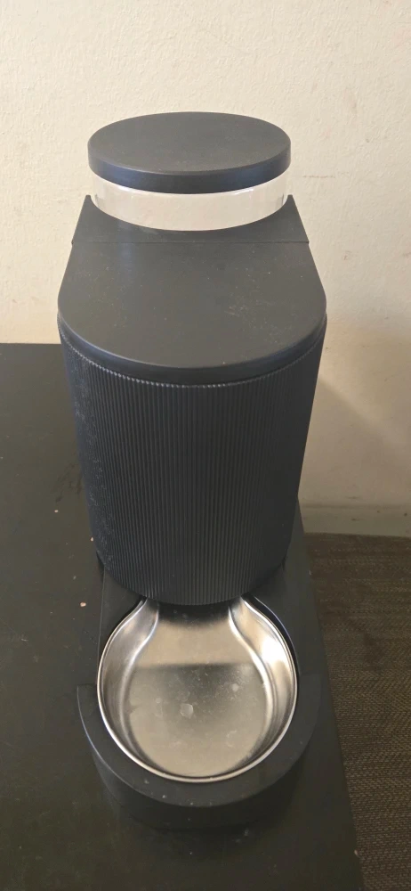 5I'm selling an automatic pet food dispenser. This is perfect for ensuring your furry friend is fed on time, even when you're not around. It has a sleek design and is easy to use. It is in good condition and ready for a new home