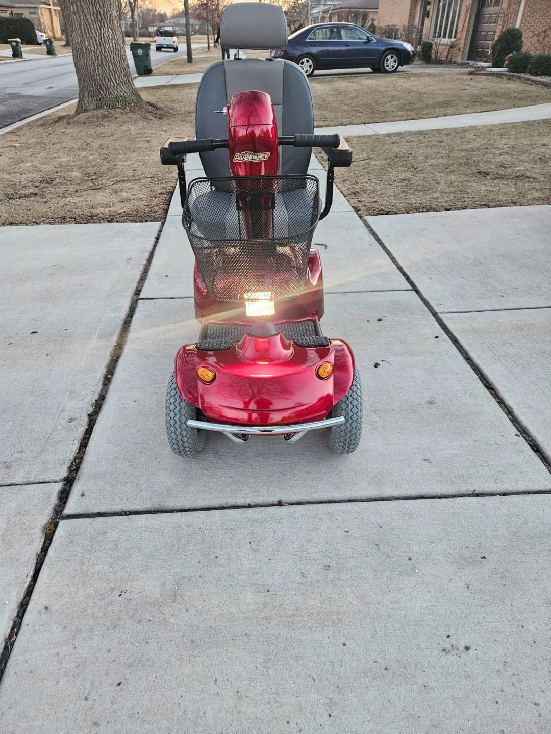 60🛵 Avenger Mobility Scooter – Red, New Batteries, Excellent Condition Great opportunity! This Avenger Mobility Scooter in shiny red is in excellent condition and comes with brand-new batteries. It’s powerful, stable, and very comfortable — perfect for daily use indoors or outdoors. 🔹 Main Features • Weight capacity: up to 500 lbs (heavy-duty and very sturdy) • 4 large wheels for smooth rides on flat or uneven surfaces • Comfortable swivel seat, adjustable and padded • Front and rear lights for extra safety • Includes: original charger and front basket • Everything works perfectly, fully tested and ready to use • Range: up to 18–25 miles per charge (depending on terrain and user weight) 🔹 Condition • Very well maintained, minimal wear • No electrical or structural issues • Test rides available before purchase • Sold fully charged and clean