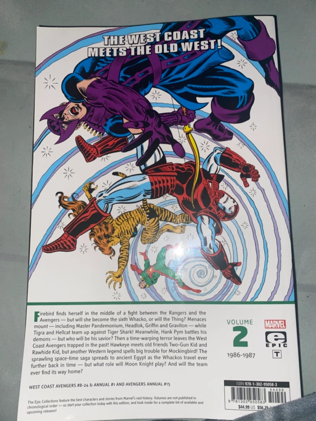 Selling Avengers West Coast Epic Collection Volume 2! This book contains West Coast Avengers #8-24 and Annual #1 and Moon Knight Annual #15. It's in great shape and ready for a new home