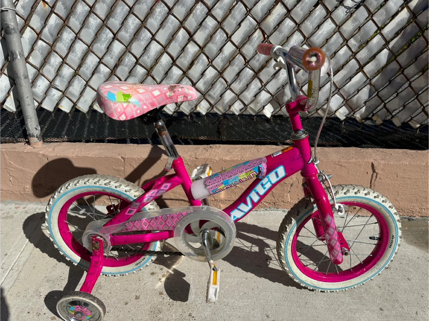 Selling a pink Avigo girls bike. It shows some signs of use but is still in good condition for fun rides!