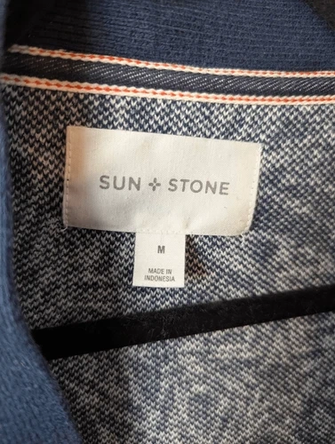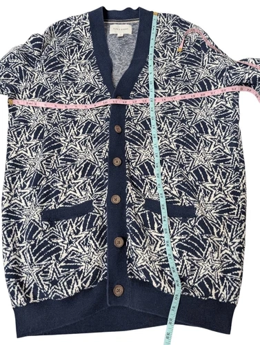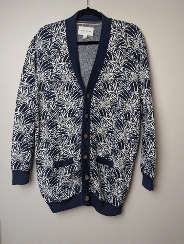 Sun + Stone men's Stephon Star print cardigan sweater Medium