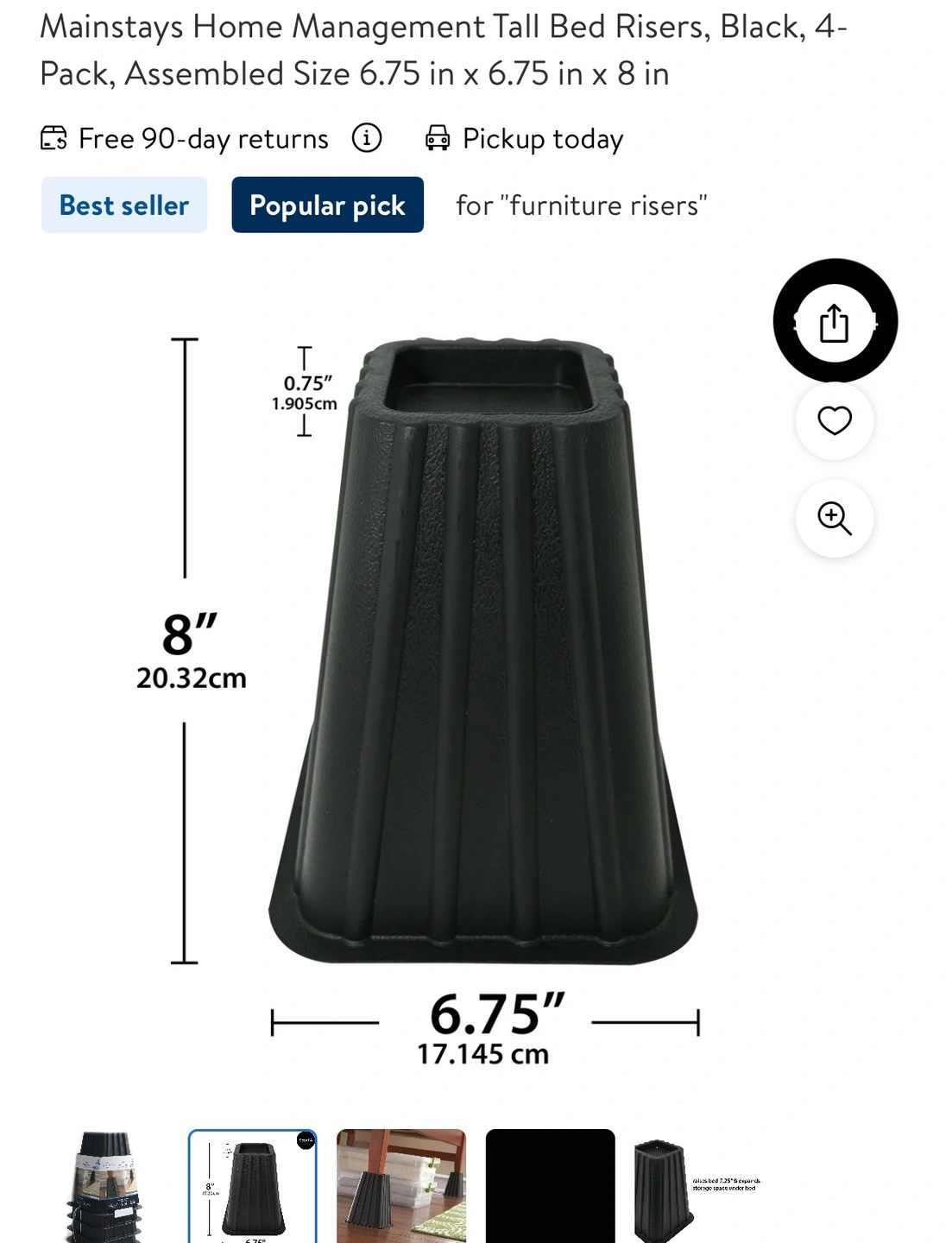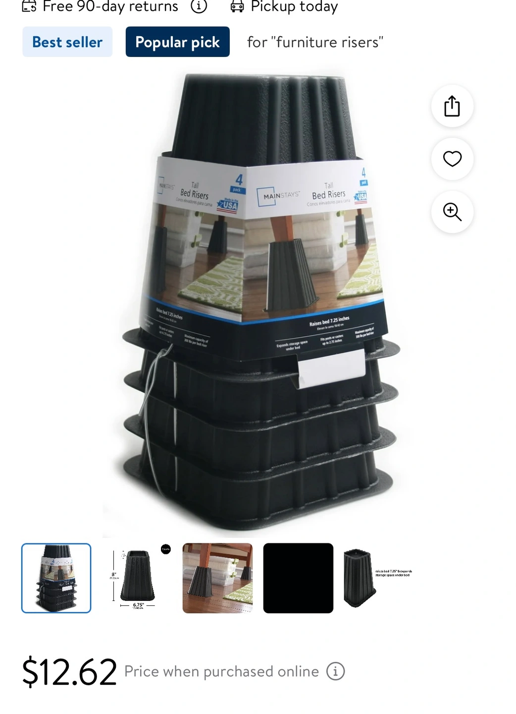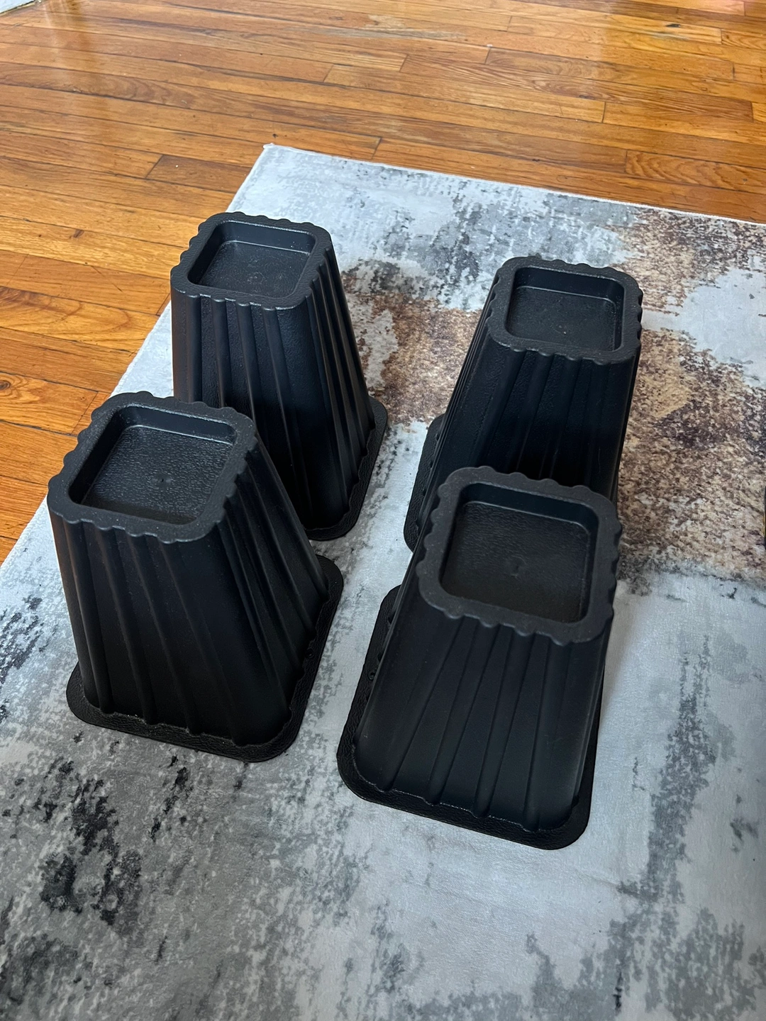 Set of four black bed risers from Mainstays. Barely used. Got a new bed so don’t need these anymore. I’m great condition.