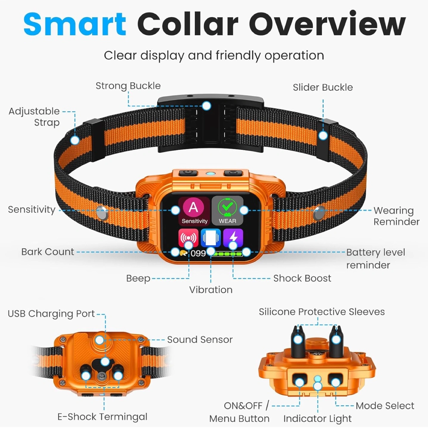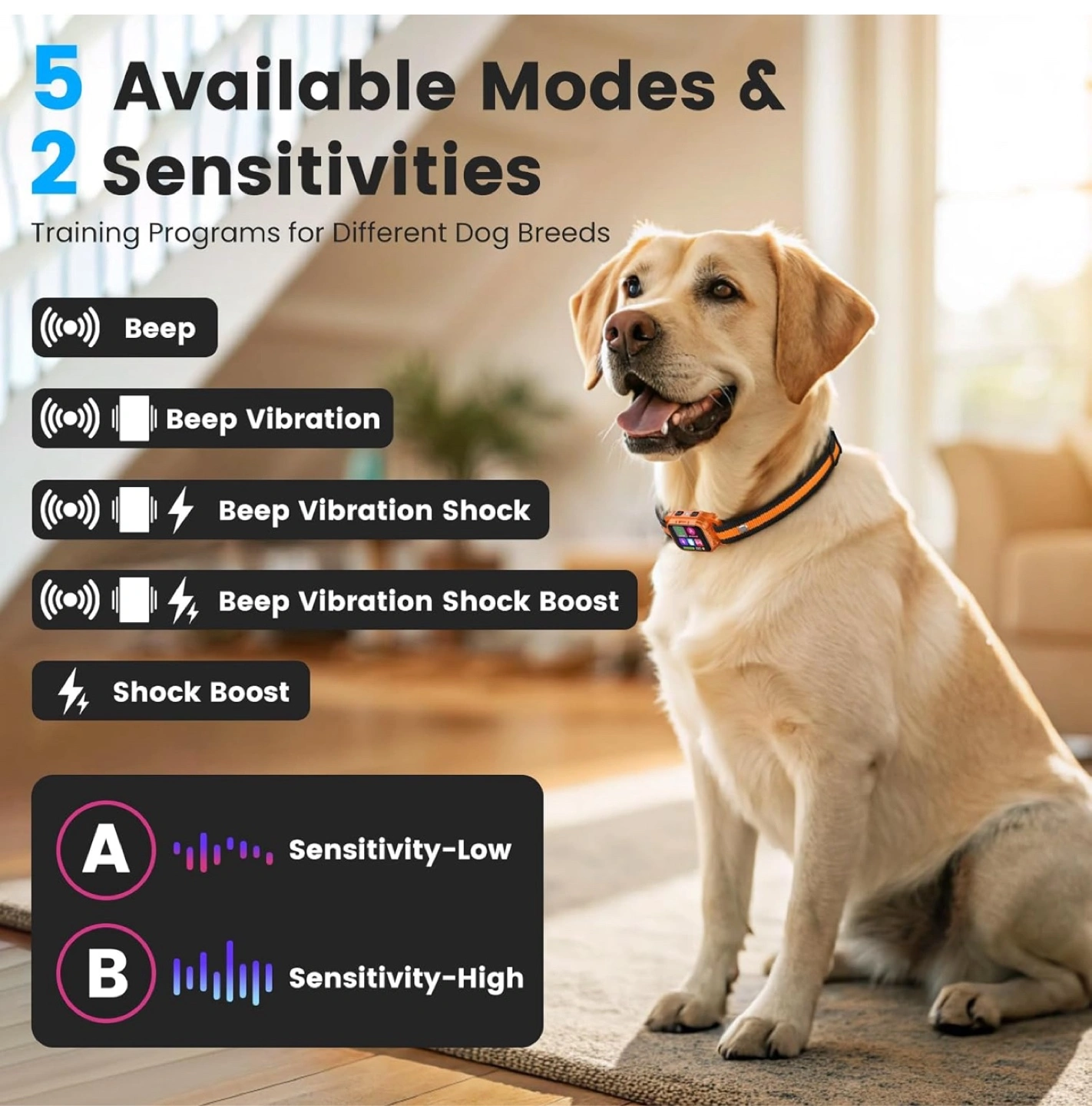 Dog Bark Collar - for Large Medium Small Dogs, Rechargeable Smart Bark Collar, Anti Barking Device for Large Dogs, Dog Training Collars with Beep Vibration and Shock & Adjustable A/B Sensitivity