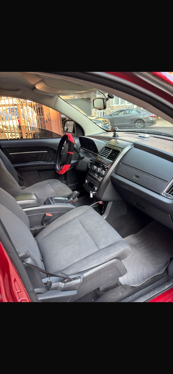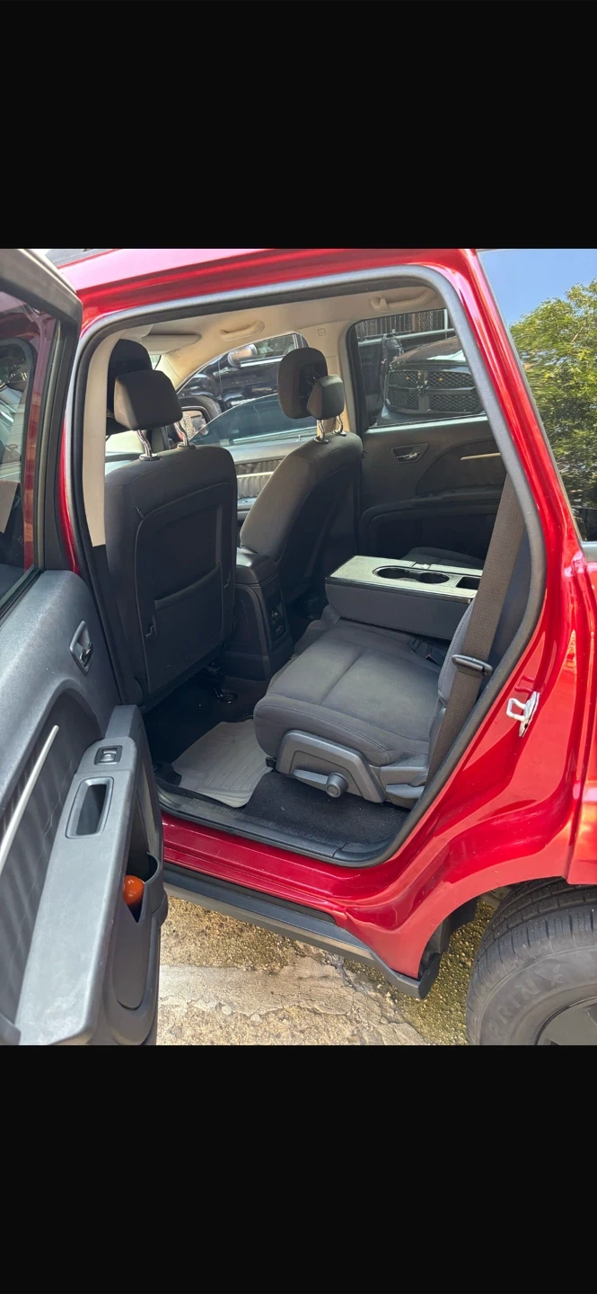 This red Dodge Journey SUV offers comfortable seating for passengers. It features a spacious interior with cloth seats and ample cargo space. Perfect for family trips or daily commutes!