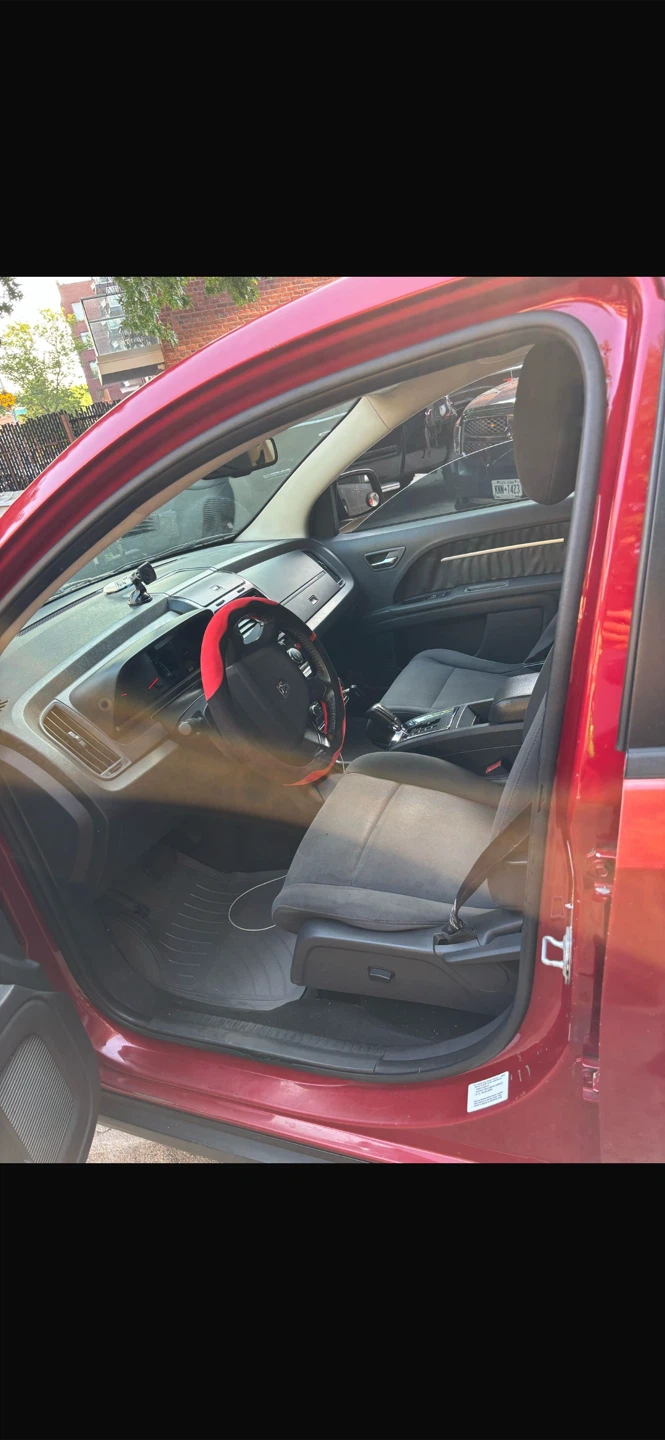 This red Dodge Journey SUV offers comfortable seating for passengers. It features a spacious interior with cloth seats and ample cargo space. Perfect for family trips or daily commutes!