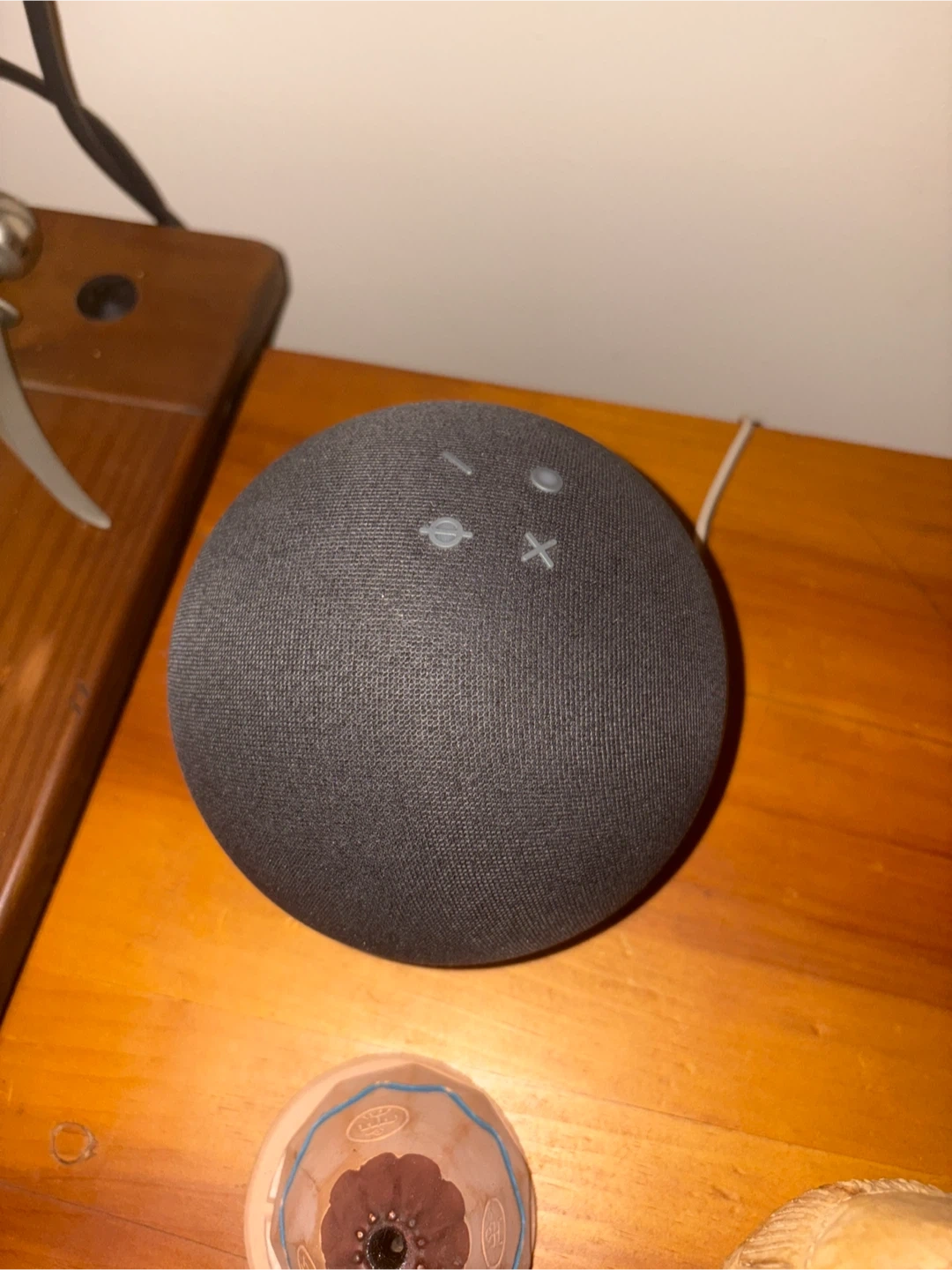 Amazon Echo Dot, 4th generation smart speaker. Charcoal fabric. Connects to Wi-Fi for voice control.