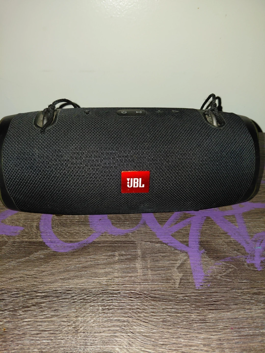 Selling a JBL Extreme 3 portable Bluetooth speaker in black. It's in great condition and ready to bring the party wherever you go! Enjoy powerful sound and deep bass from this rugged and waterproof speaker.