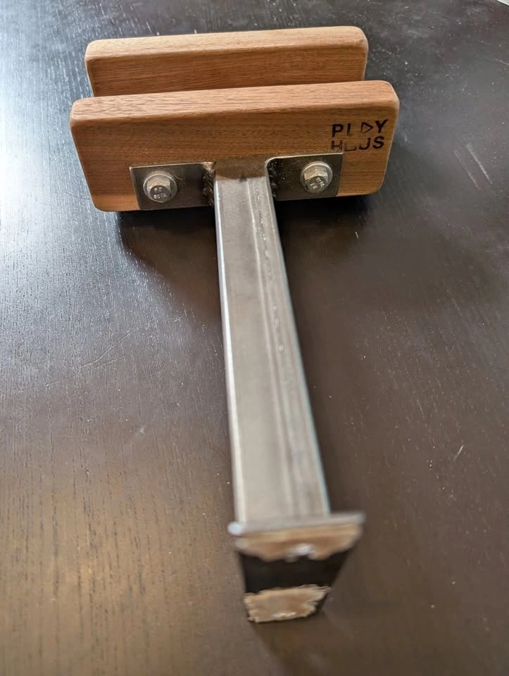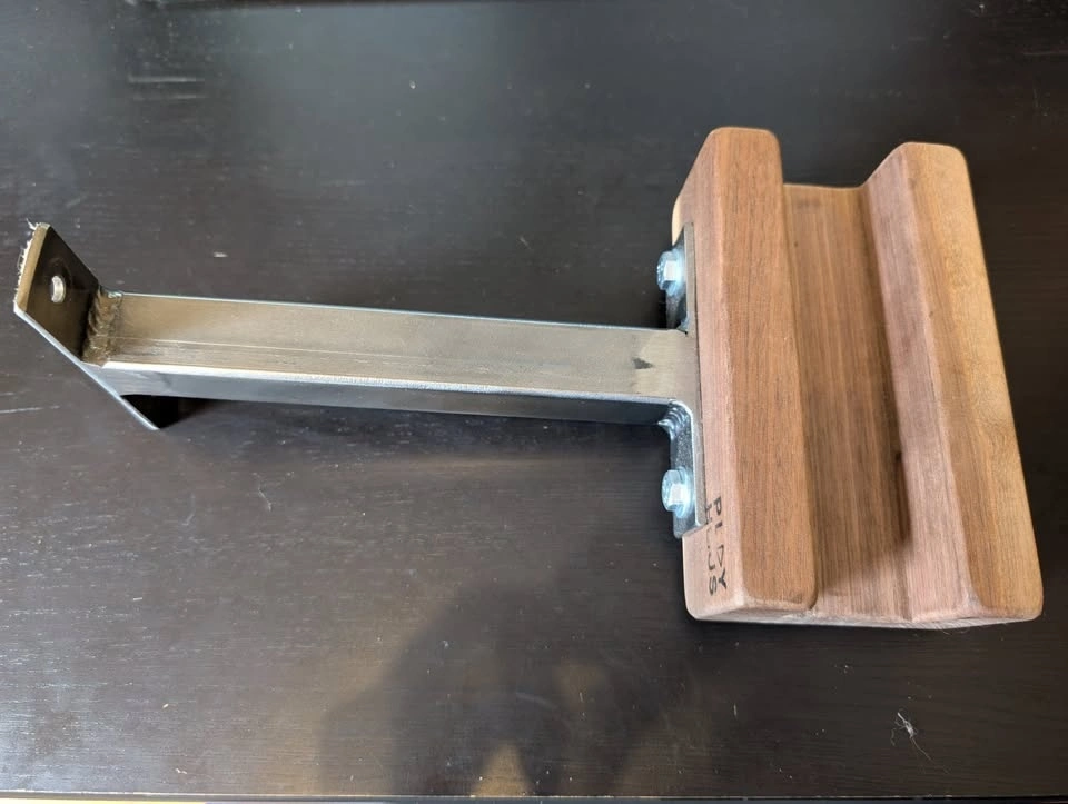 Made from solid walnut and sealed with a beeswax/oil mixture to bring out the wood’s natural color and unique grain. Steel frame. Bicycles can be hung horizontally from the top tube or vertically from the seat post. Good for handlebars up to 18” wide. 1.5" channel, best for narrower frames, like road bikes. Intended to be installed into a stud. Hardware not included. Requires a couple of lag bolts. Originally $55 but no longer sold by manufacturer.