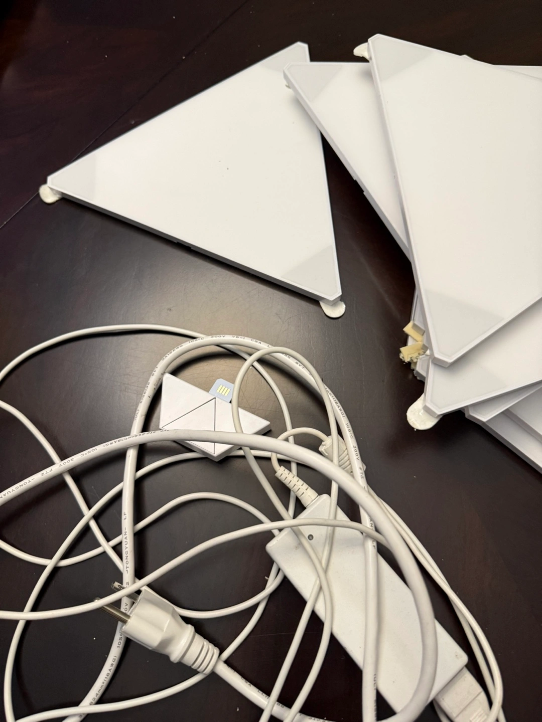 Some of the panels still have the original wall adhesive attached from our previous setup at our old apartment, so the buyer will need to remove that before reinstalling. These retail for a lot when new, so it’s a good deal for anyone looking to add some smart lighting with major visual impact.
