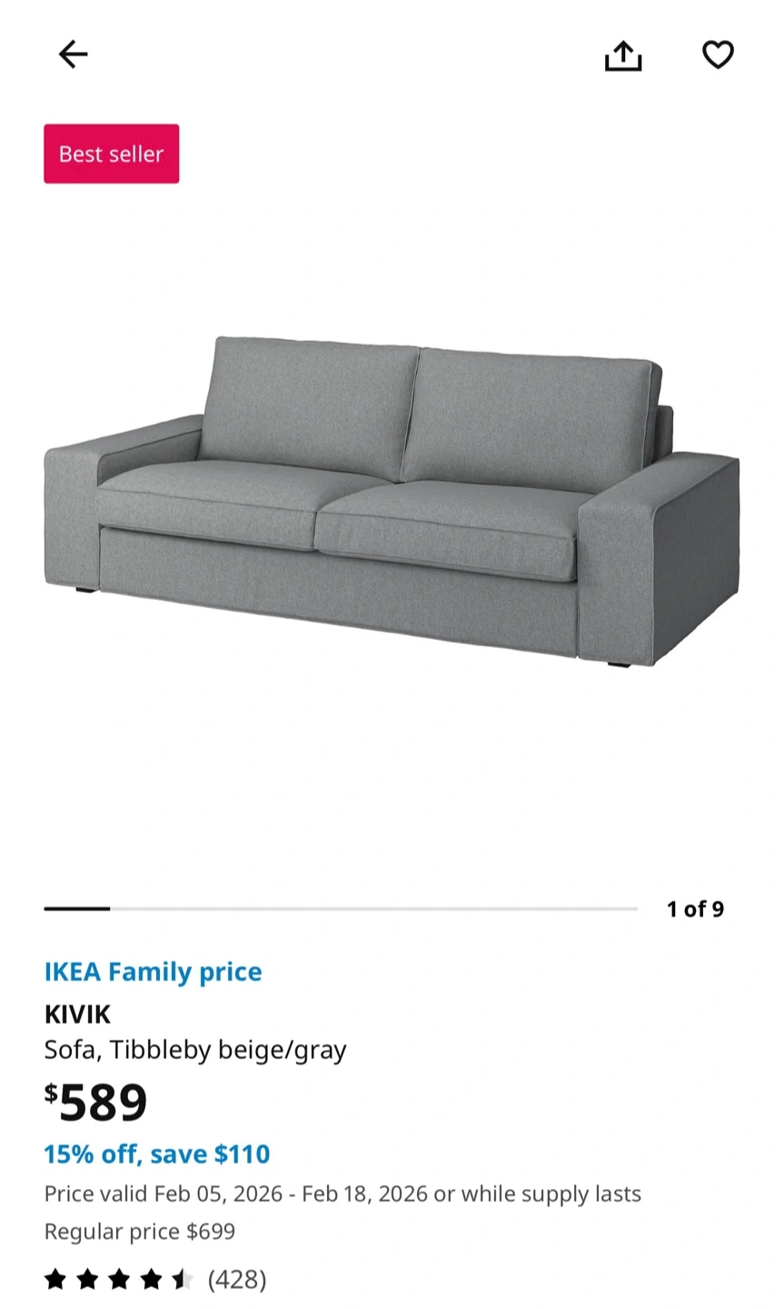 This is an IKEA KIVIK sofa in the Tibbleby beige/gray fabric.