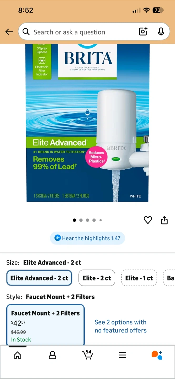 2 pc Brita Elite Advanced Faucet Mount Filter System - White