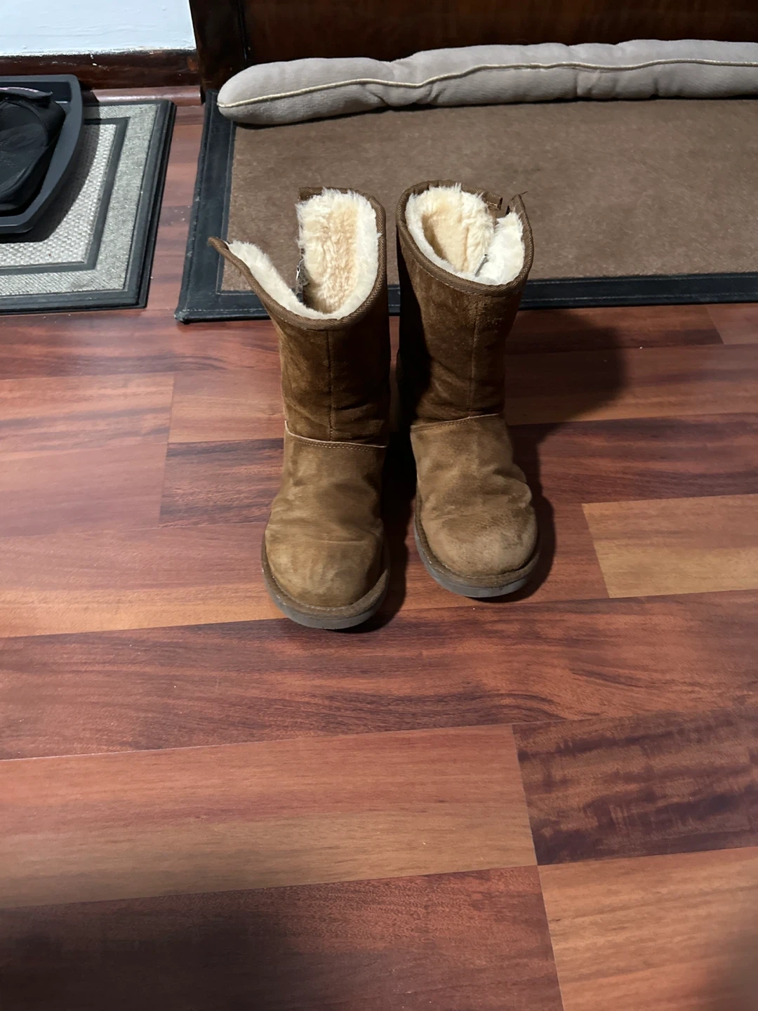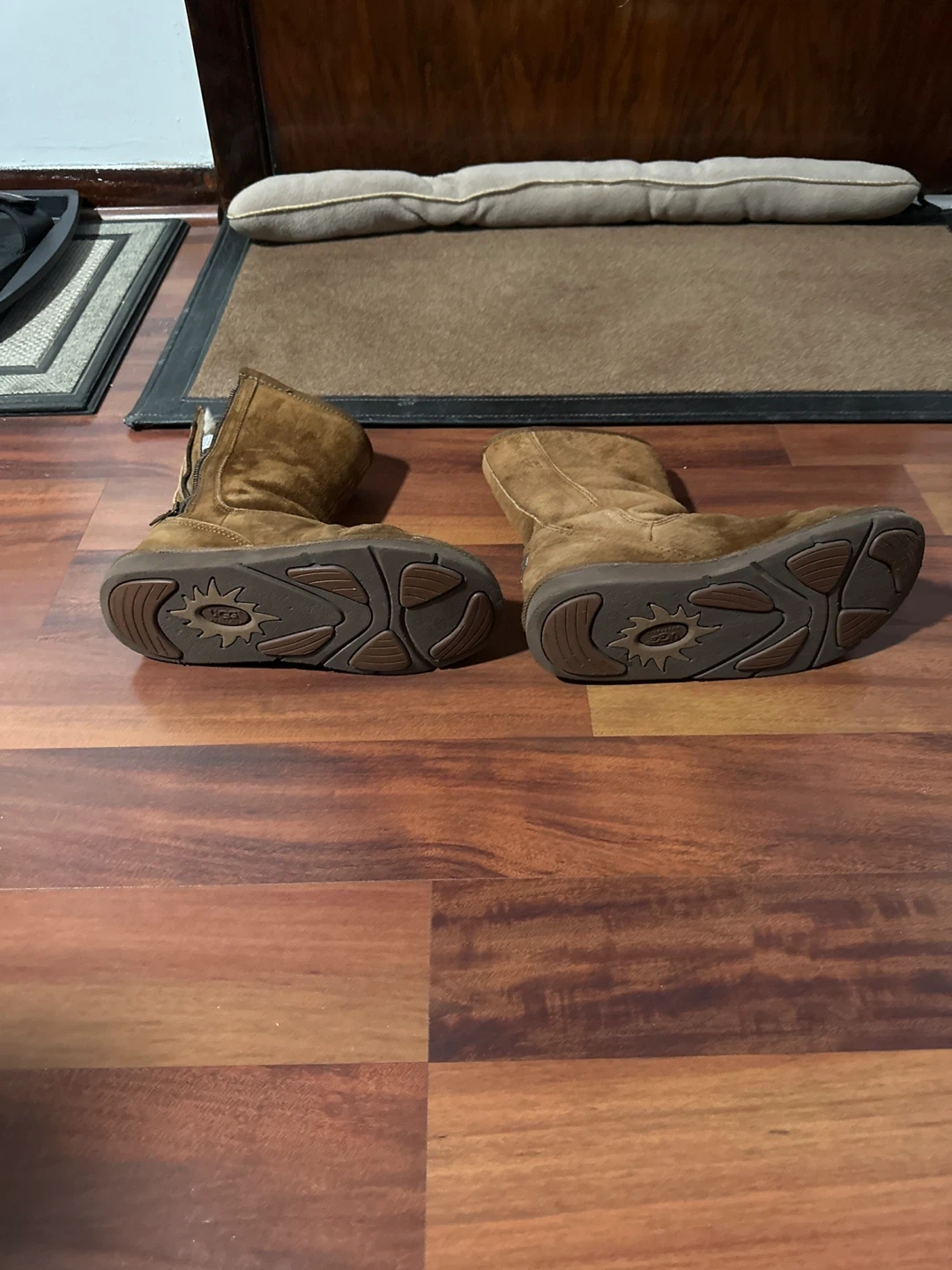 These UGG Australia boots are made of sheepskin with a cozy, furry lining. They feature a side zipper for easy on and off. Perfect for keeping your feet warm!