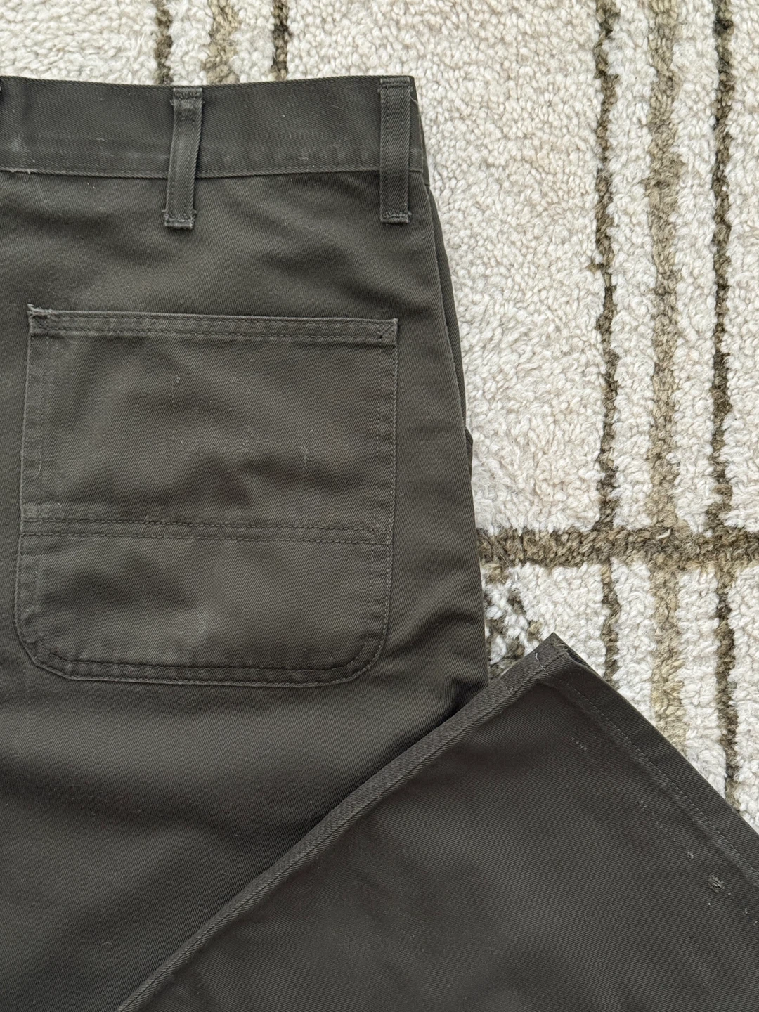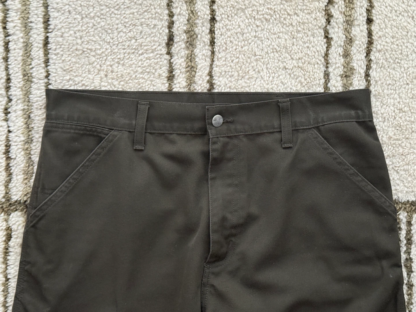 Cotton/poly blend. Tag size 32×32, inseam hemmed to approx. 29”. Pre-owned condition with minor wear and small marks (see photos). Carhartt patch on the back pocket has been removed.
