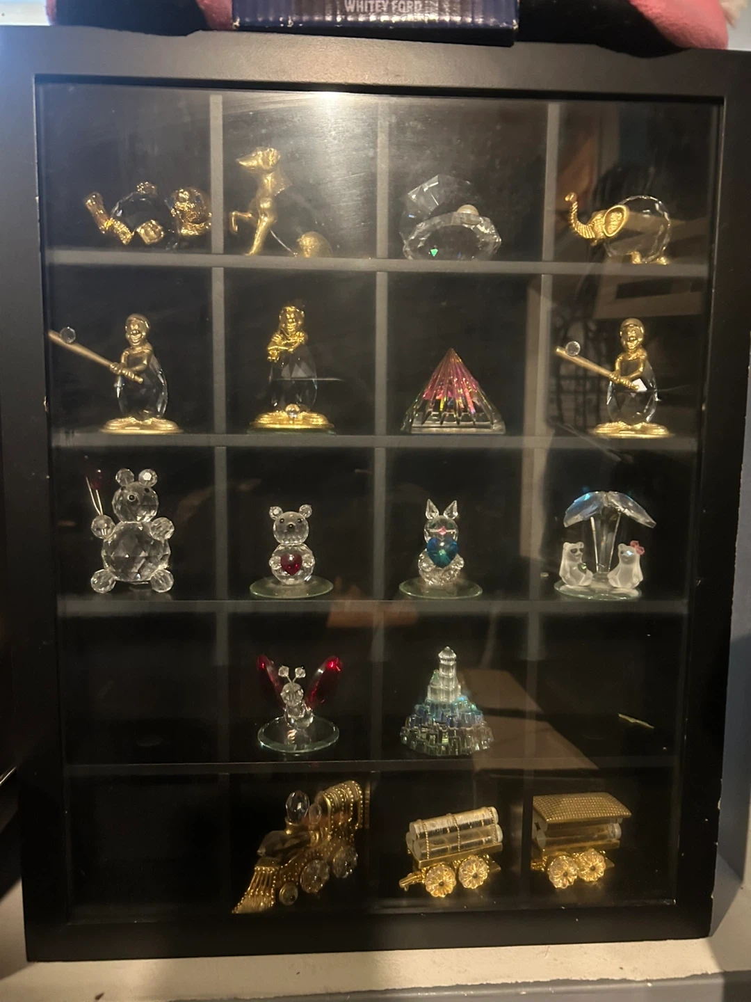 Selling crystal figurines. The figurines are various shapes and sizes, including animals, people, and geometric shapes. The display case is black & Each Figurine is $50 Each. If You Buy them all I’ll throw in the case. $800 for all