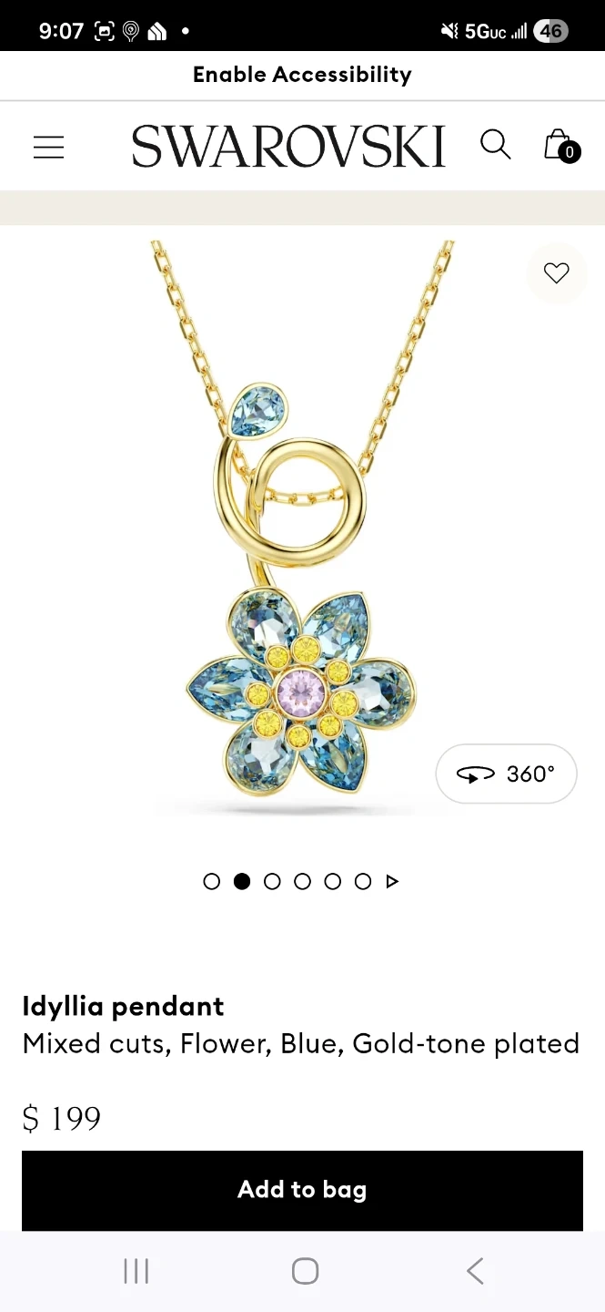 This is a Swarovski Idyllia pendant featuring a blue flower design. It's gold-tone plated with mixed cuts. Perfect for adding a touch of sparkle to any outfit!