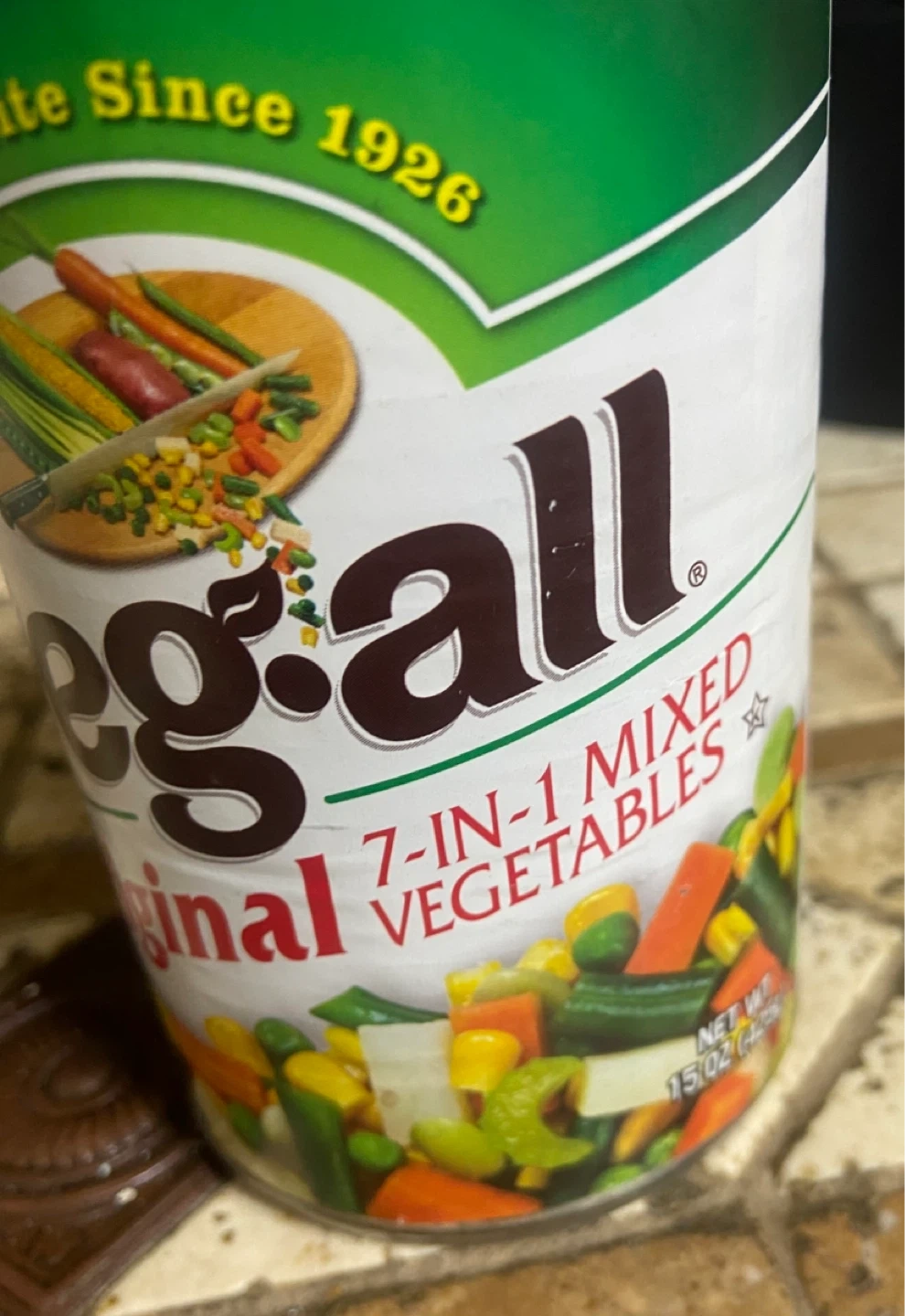 Veg-all Original 7-in-1 mixed vegetables. Includes carrots, peas, green beans, corn, potatoes, celery, and lima beans. Can is 15 oz.