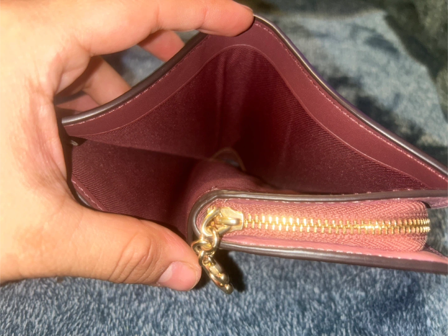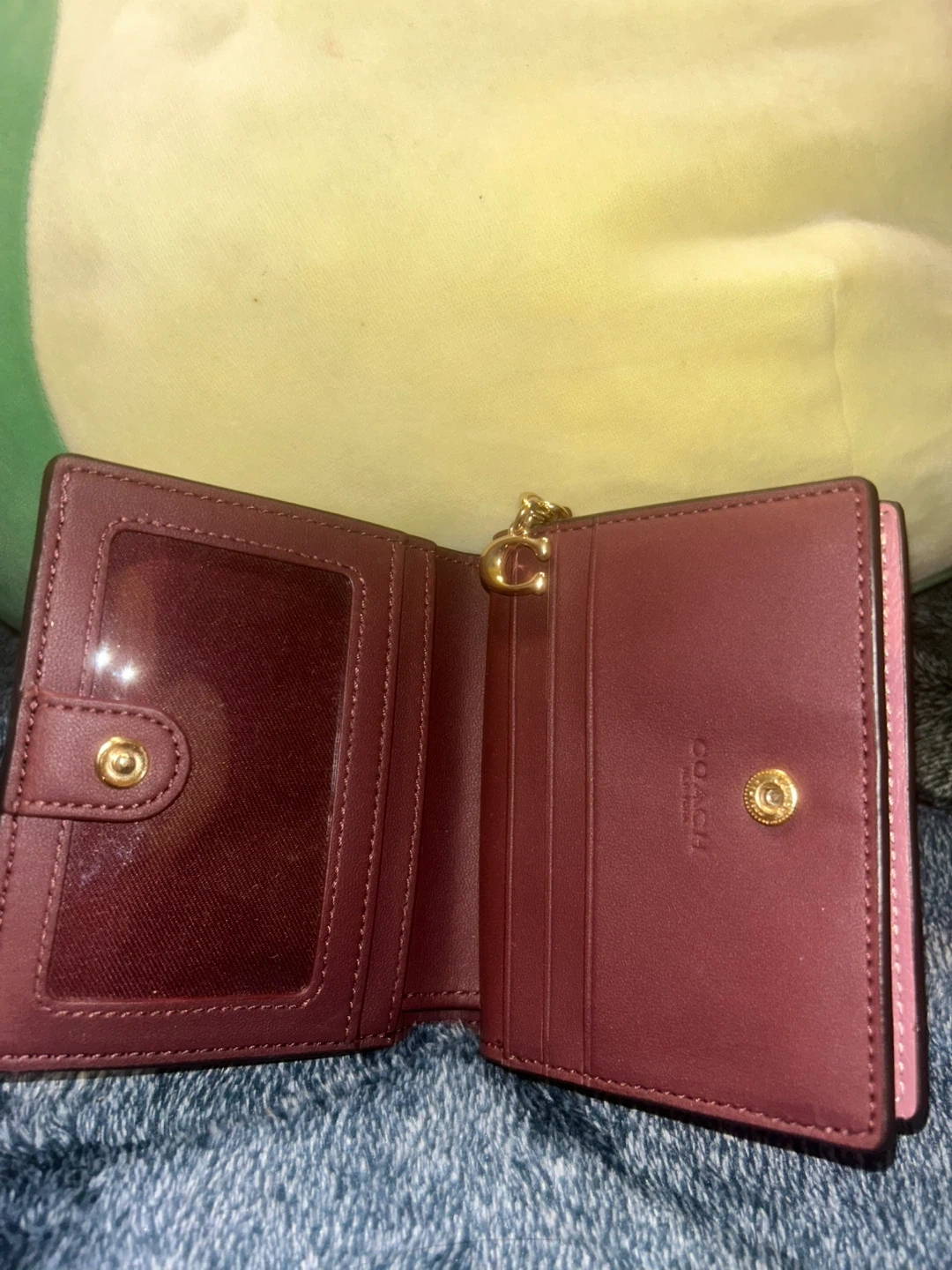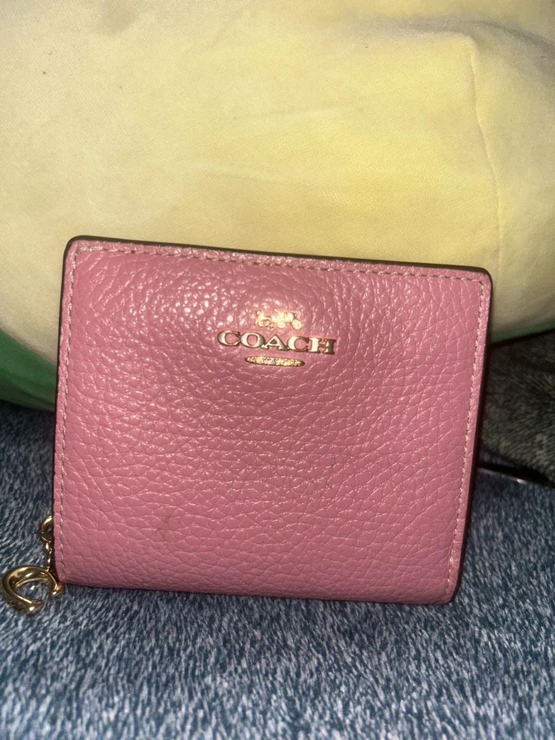 Selling a cute Coach trifold wallet in a lovely pink color. It's made of leather and has a convenient trifold design. Perfect for keeping your cards and cash organized!