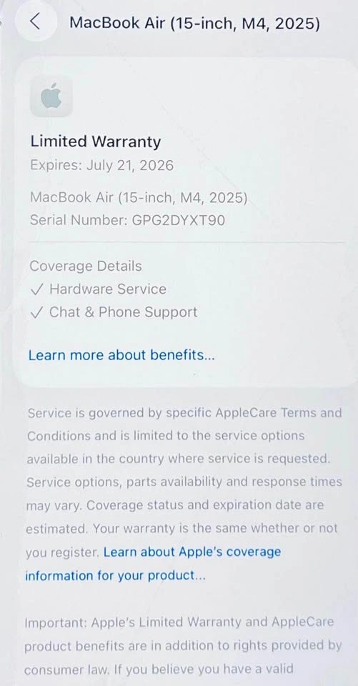 Apple MACBOOK AIR π» 15β M4 24GB RAM 512GB Apple Warranty till 07