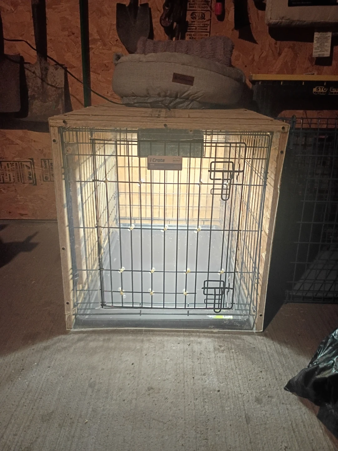 This iCrate pet crate is a great size for medium pets. It comes with a cozy, plush pet bed. The crate has a durable wire construction with a plastic pan for easy cleaning.also includes lighting on the inside and a wood cover for metal structure. Selling custom dog crates with wooden features and also lighting for more comfort and different designs