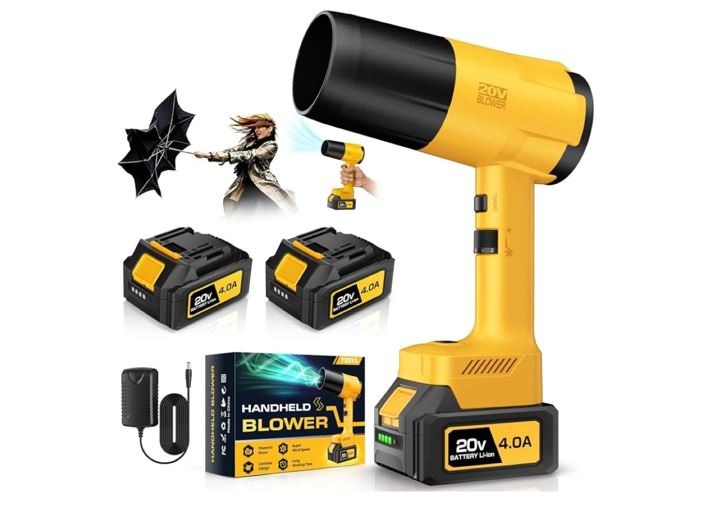 20V Cordless Handheld Leaf Blower with 2x 4.0A Batteries