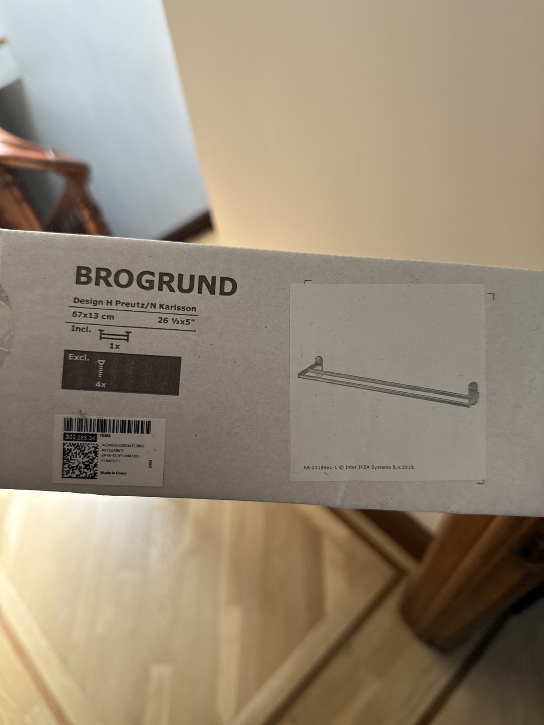 Giving away 2 brand new IKEA BROGRUND towel rail, still in its original packaging! The dimensions are 67x13 cm (26 1/2x5"). Includes the necessary hardware for installation (4x).