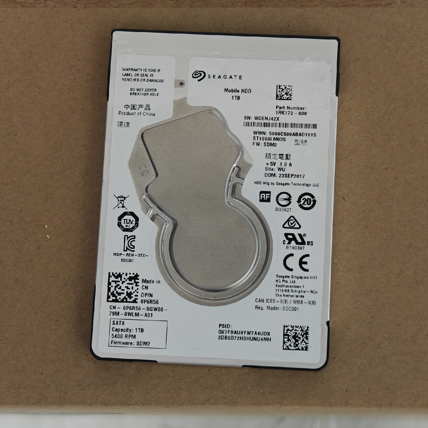- Capacity: 1TB - 5400 RPM - Model: ST1000LM035