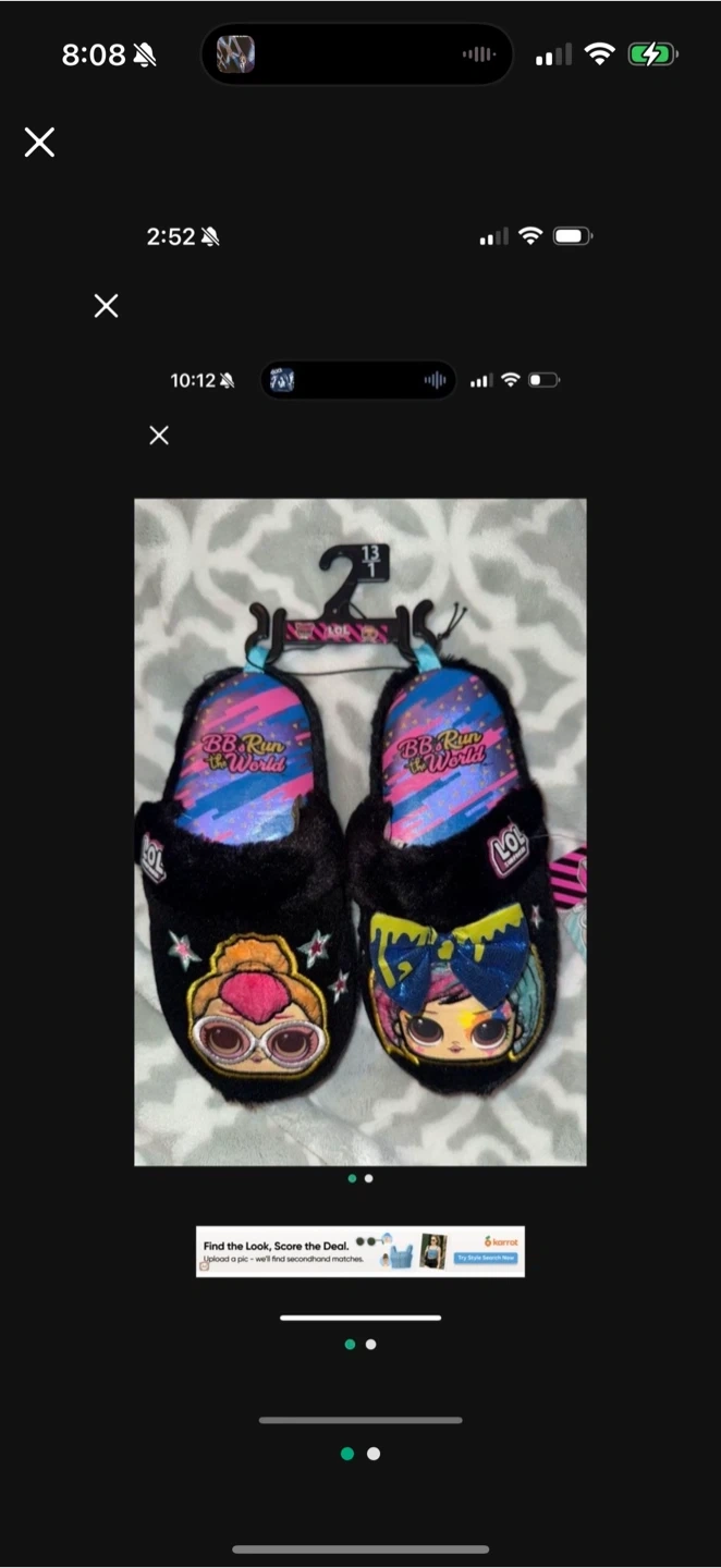 These are LOL Surprise! slippers for girls. They are size 13-1 and have a pink sole. They are black with colorful designs featuring LOL Surprise! dolls