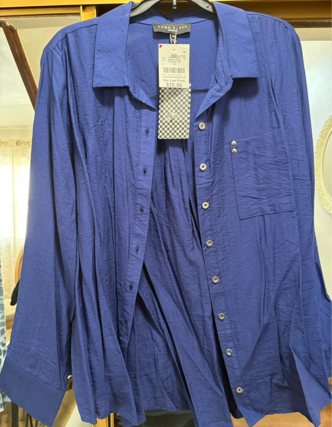 COMO BLACK WOMAN Blue Button up top- Size 1X