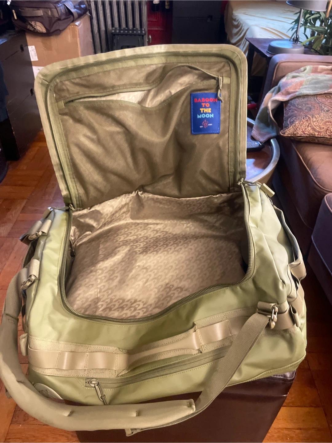 Selling a Baboon to the Moon Go-Bag in great condition! It's a versatile and durable bag perfect for travel or everyday use. The bag has a spacious interior and sturdy construction to hold all your essentials. Only used twice, it’s basically brand new!