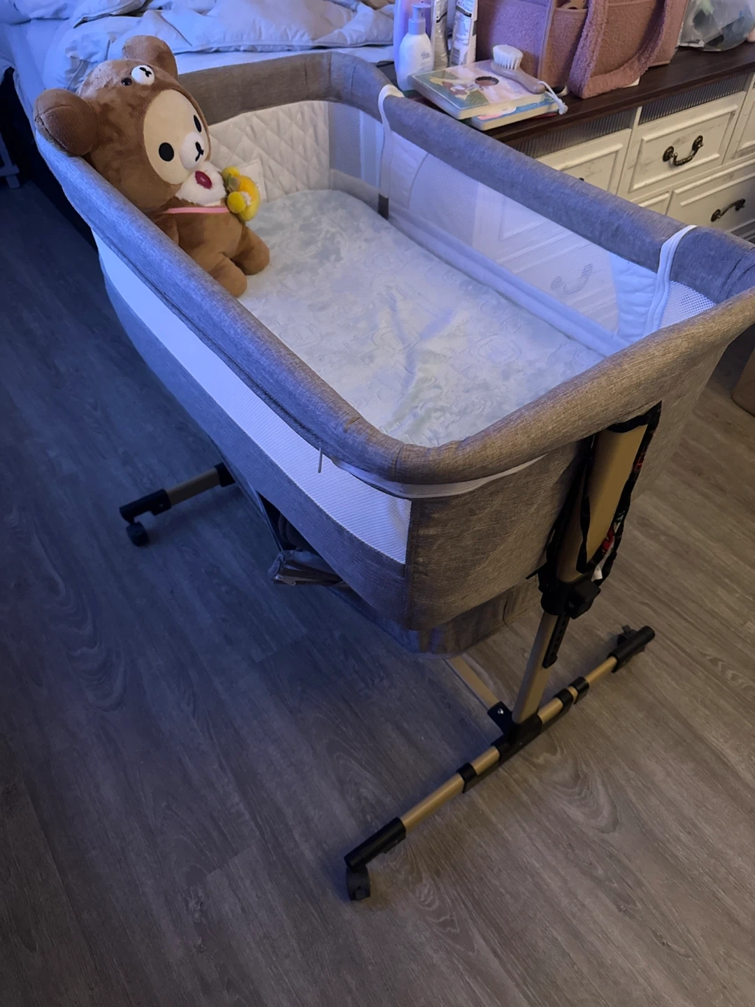 Selling a baby bassinet that's in great condition! It's perfect for newborns and infants. This bassinet is sturdy and comfortable, providing a safe sleeping space for your little one. It's been gently used and well-maintained, ready for a new home