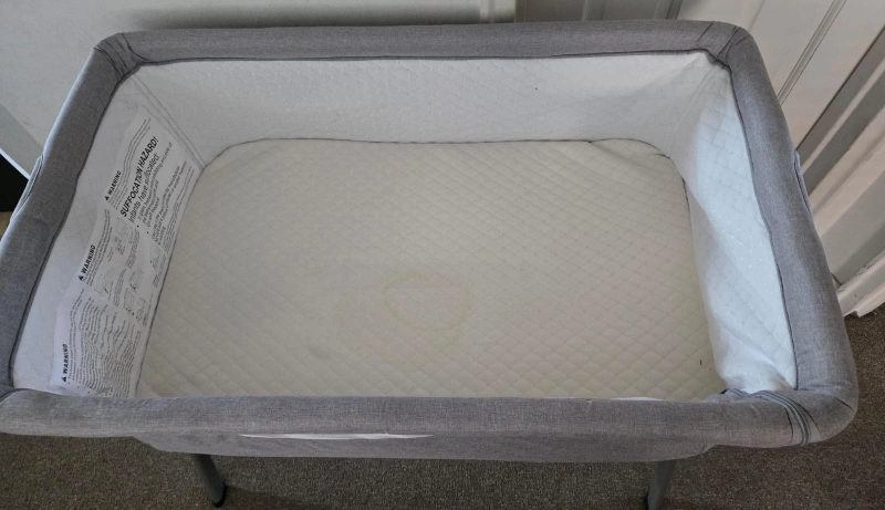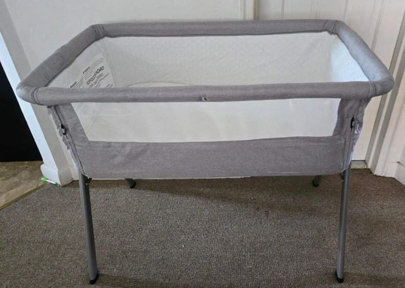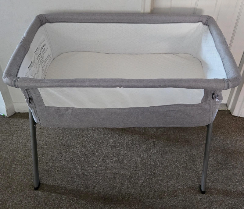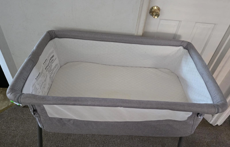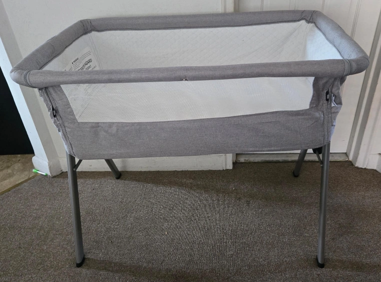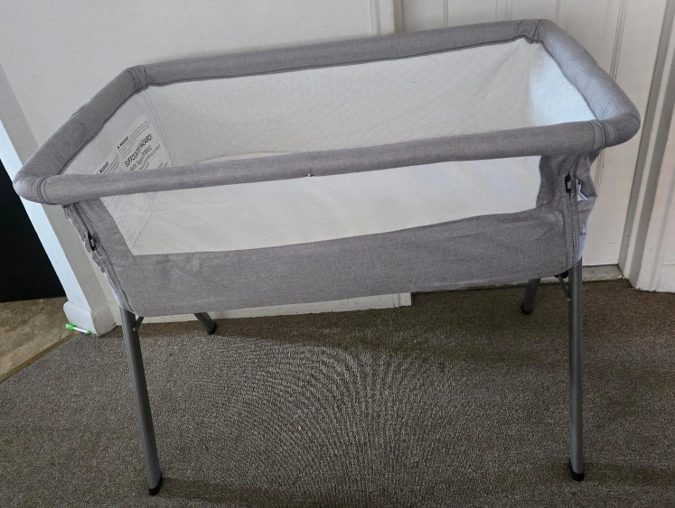 Selling a baby bassinet in gray. It is in good condition and ready for a new home! Perfect for newborns and infants