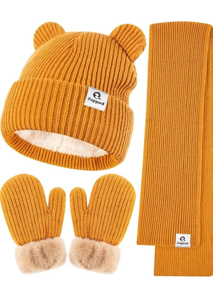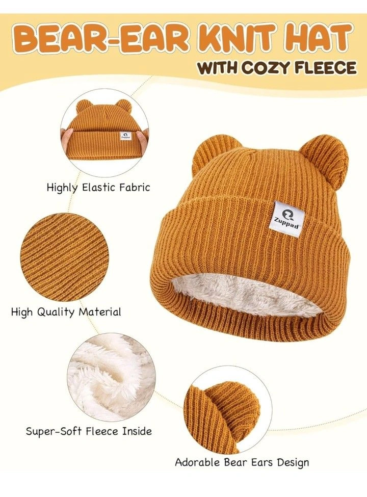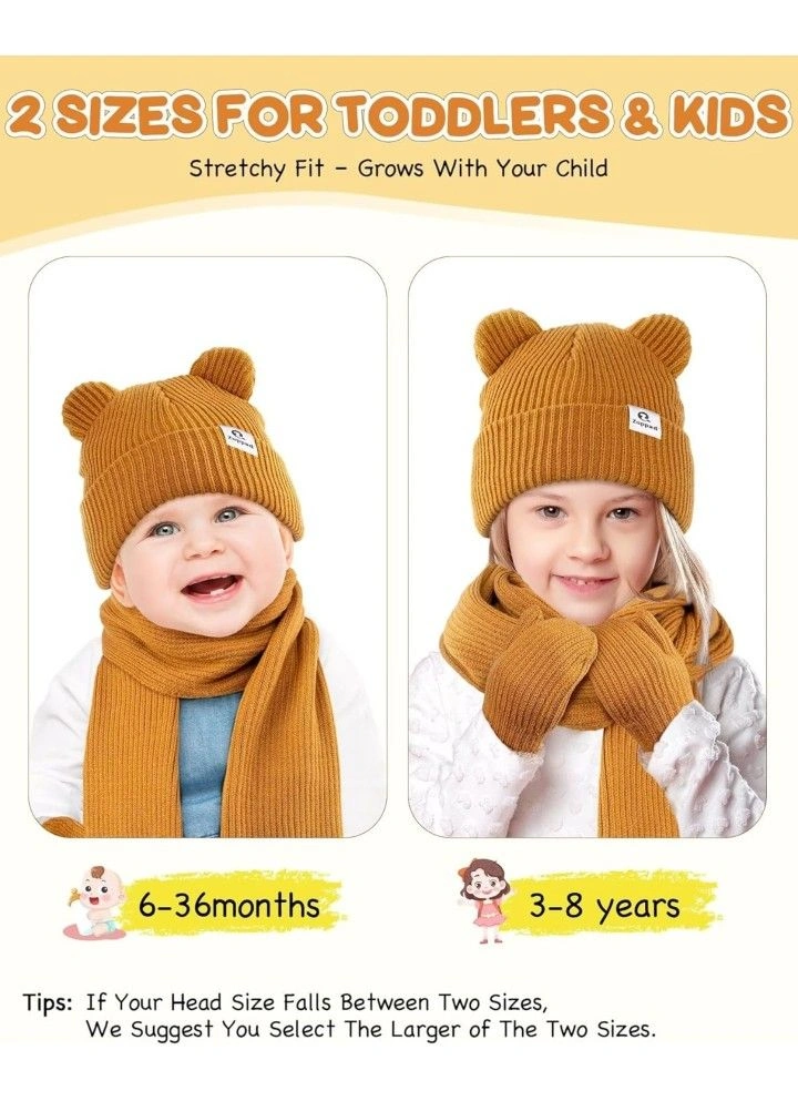 Toddler Infant Kids Winter Hat with Bear Ear Thermal Gloves Neck Warmer Set for Girls Boys Size: 6-36 Months