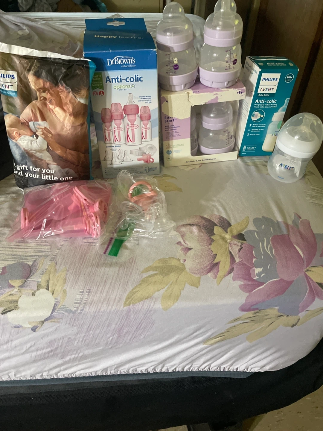70Selling a set of baby bottles including Philips Avent and Dr. Brown's anti-colic bottles. Perfect for newborns and infants. Get everything you need to feed your little one! Never been used daughter just had a baby last month she is breastfeeding no needs for the bottles