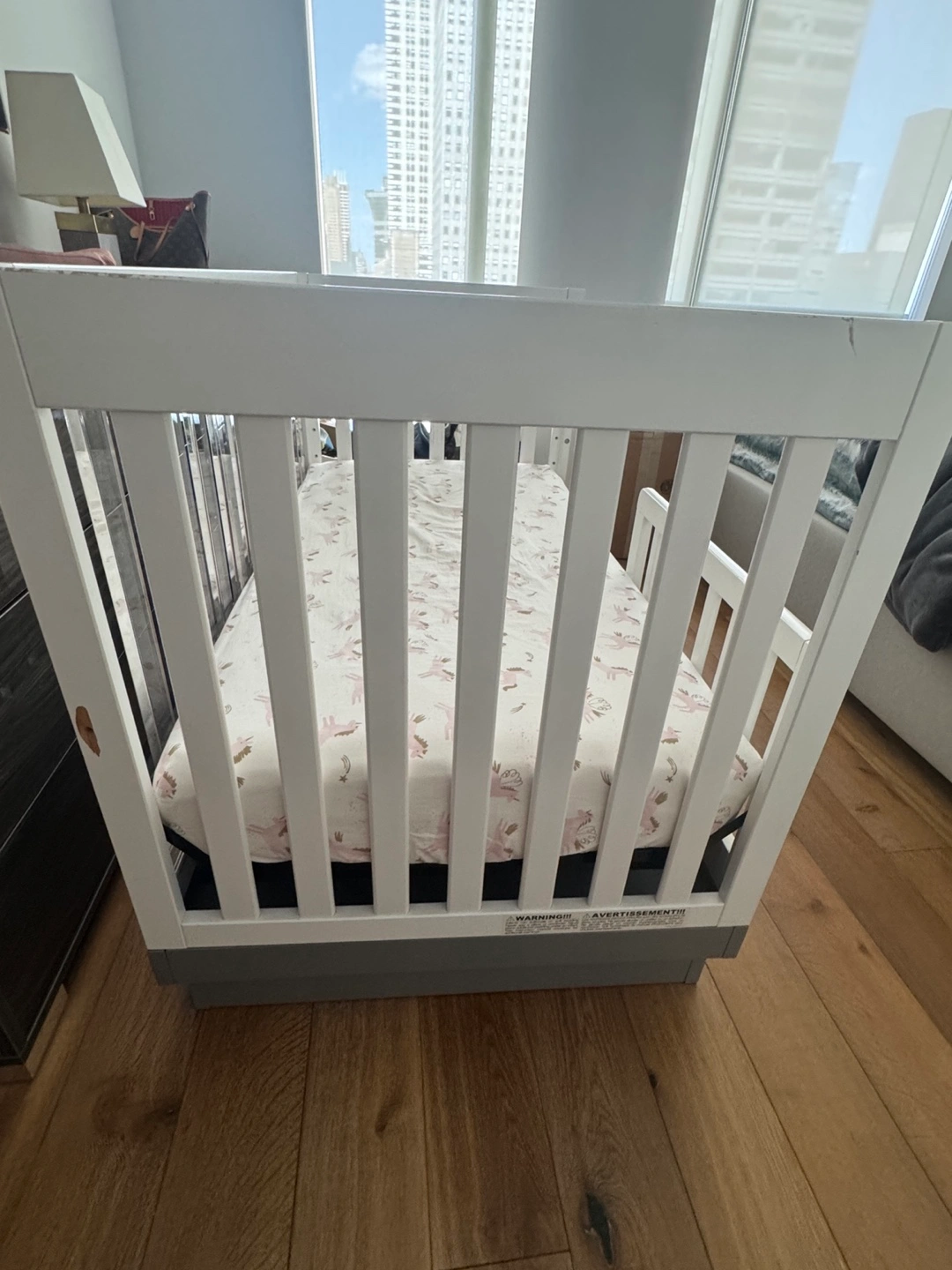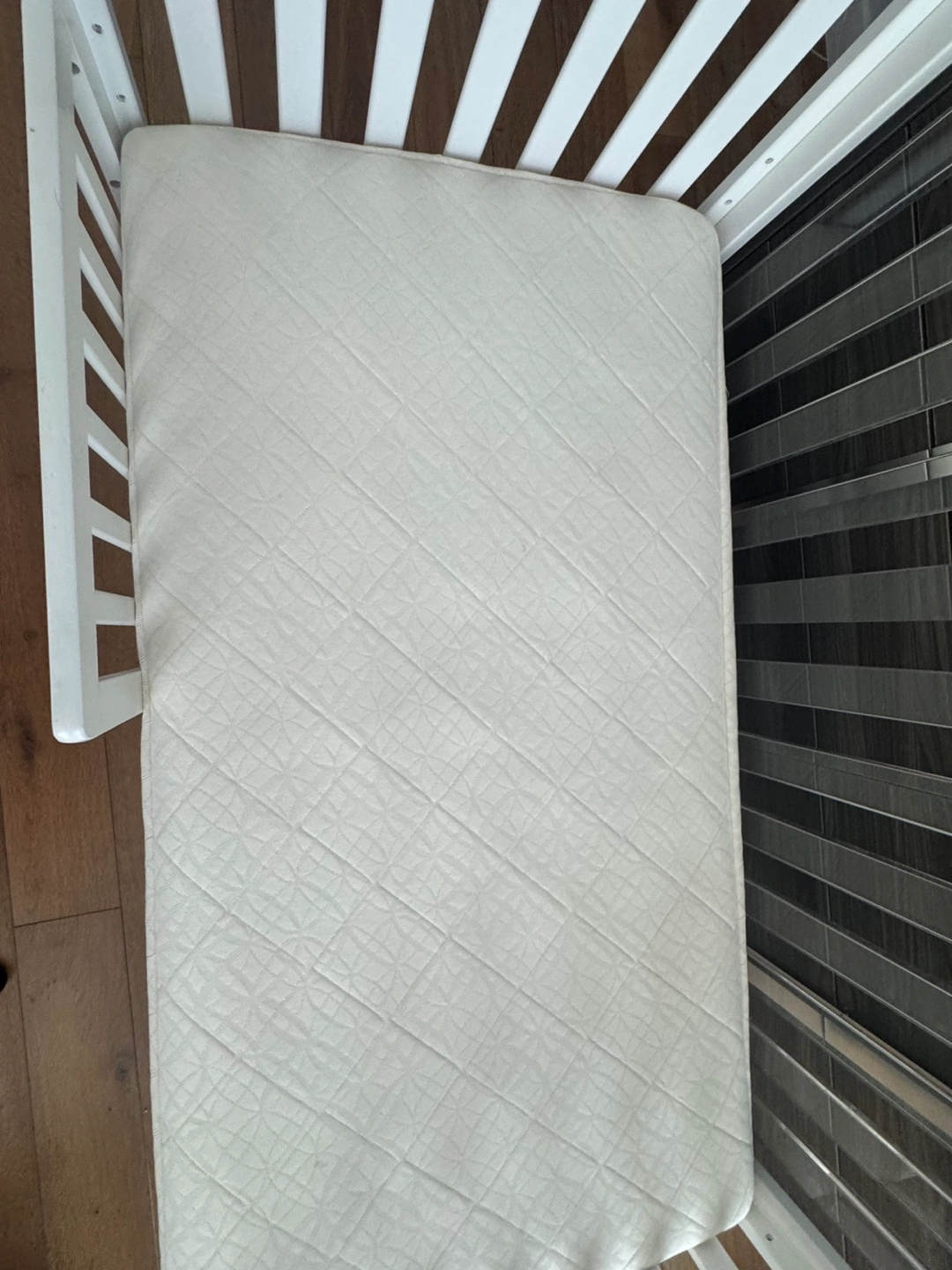 10Selling a crib in good condition with few scratches and ready for a new home. The mattress is like new and barely used. Both items are $300. I can sell it separate too. Crib: $150 Mattress brand is Naturepedic for $200