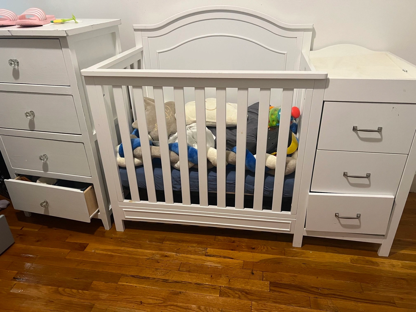 Dresser and crib with drawers.