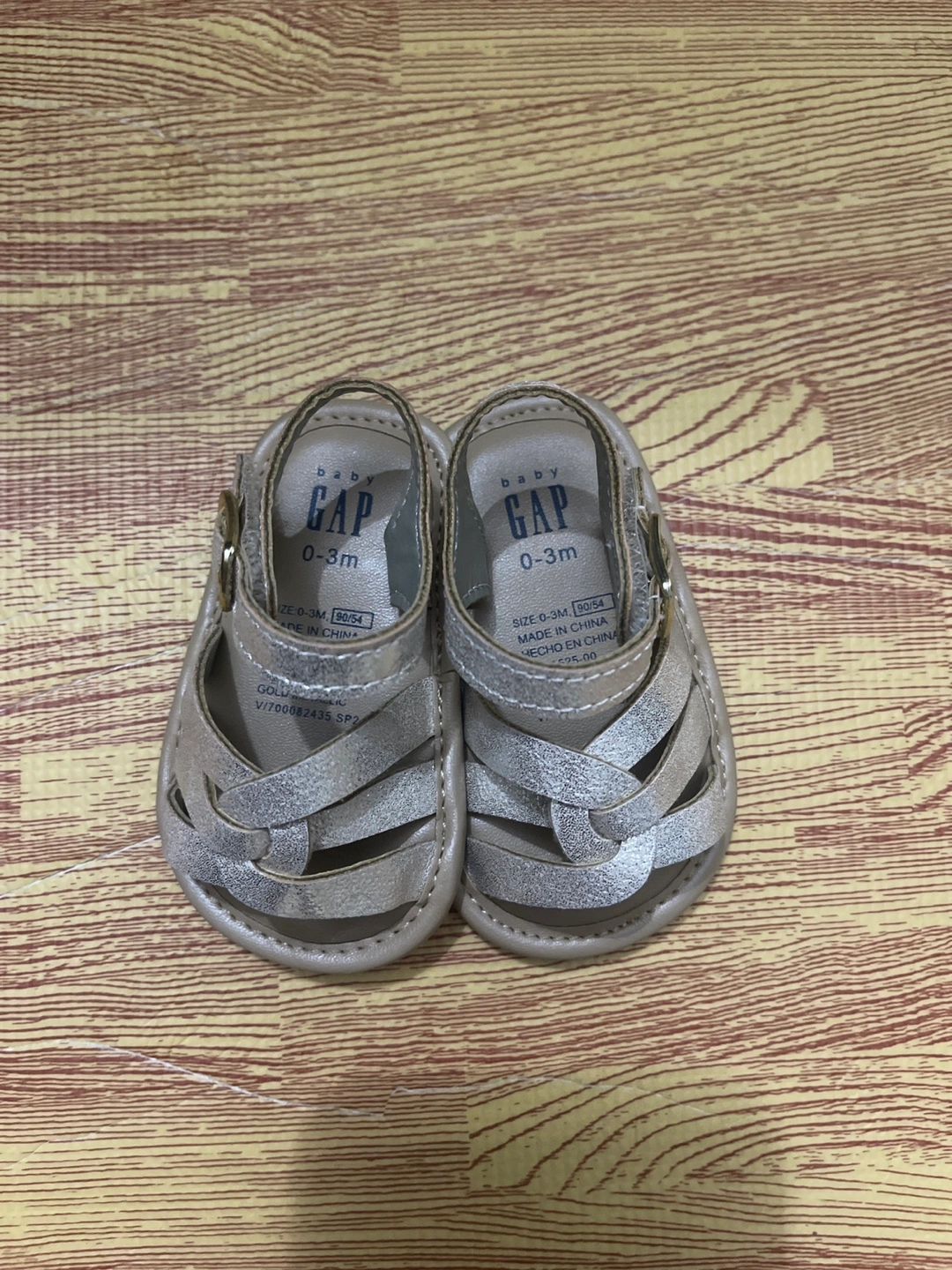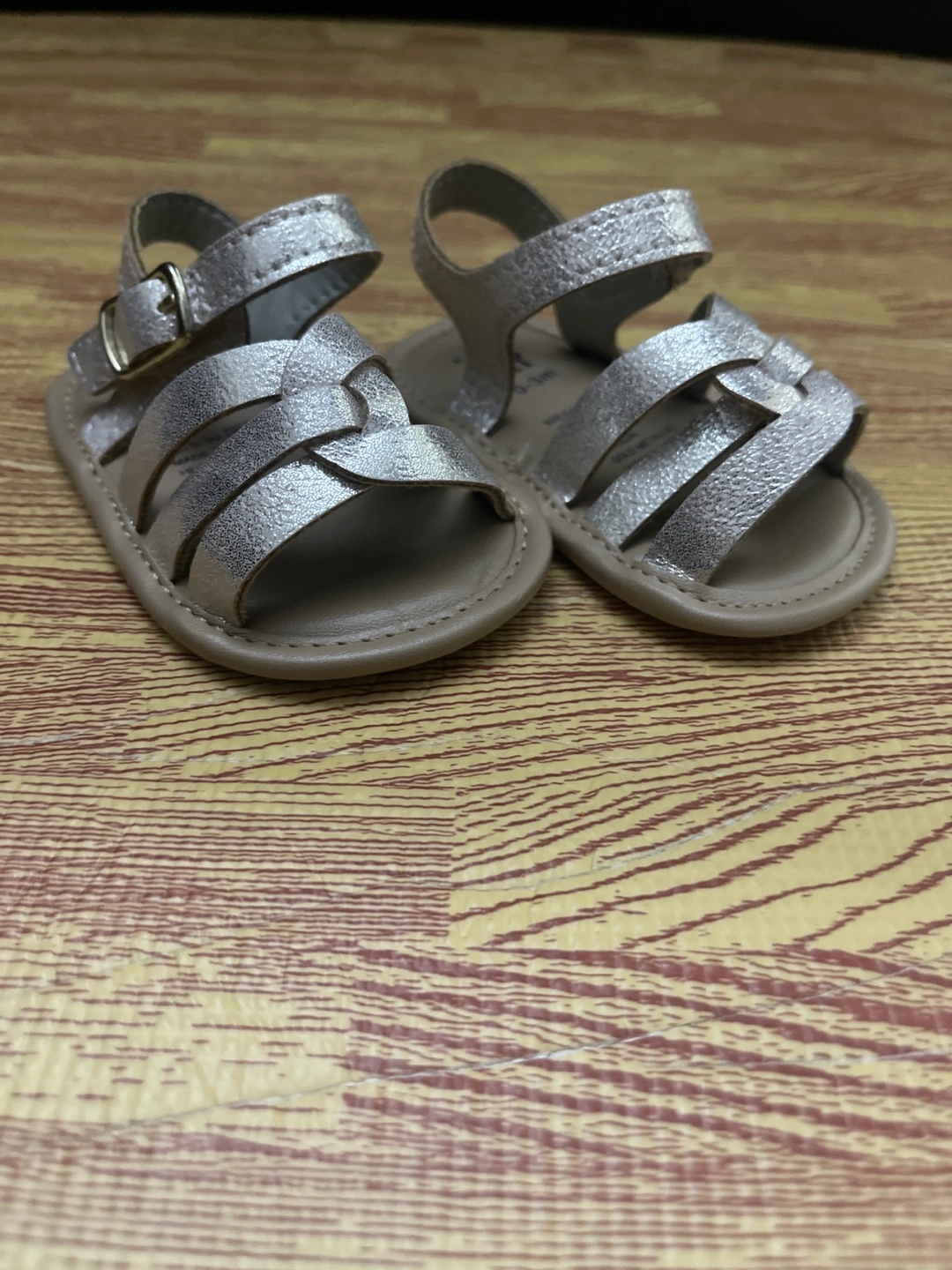 Lovely sandals, perfect for your little one. Gold in color, with straps across the top. A great pair of shoes for your child to explore the world in.