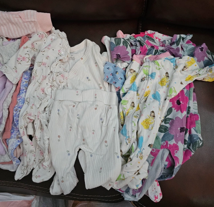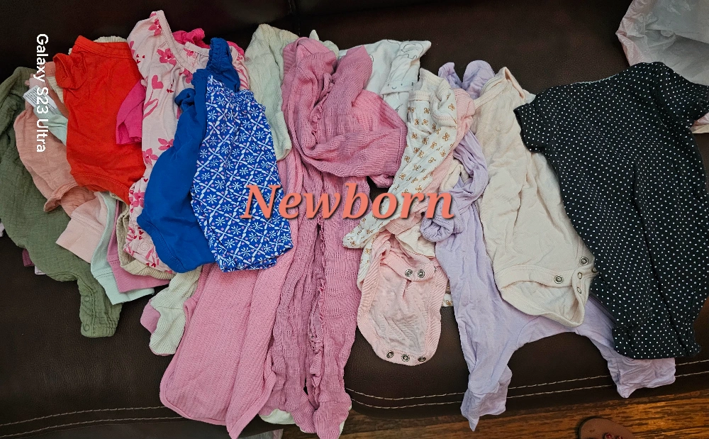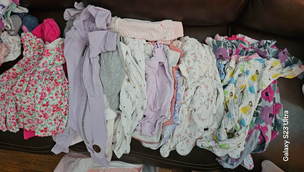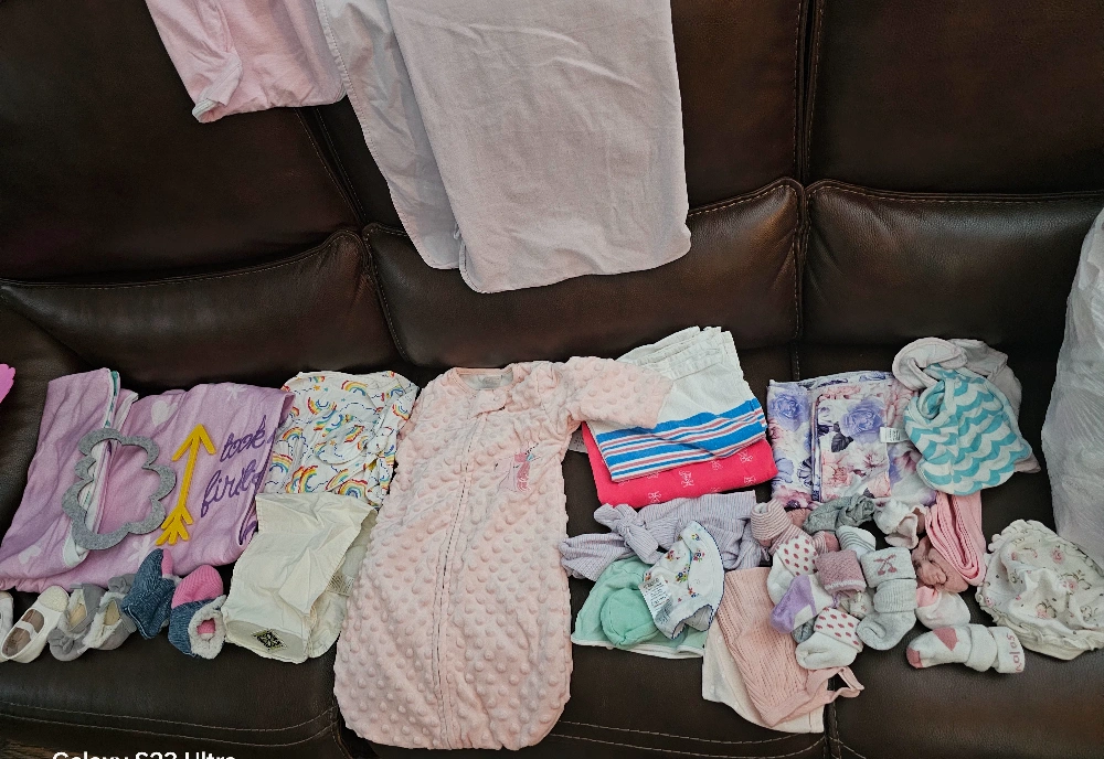 Selling a bundle of baby girl clothes, perfect for newborns up to 3 months old! Includes a variety of outfits, swaddles including Ollie -if you buy brand new its over $50 itself and a lot of more set of swaddle,baby milestone blanket, and accessories.I can trade if you have 6-7 girl stuff or 18months +