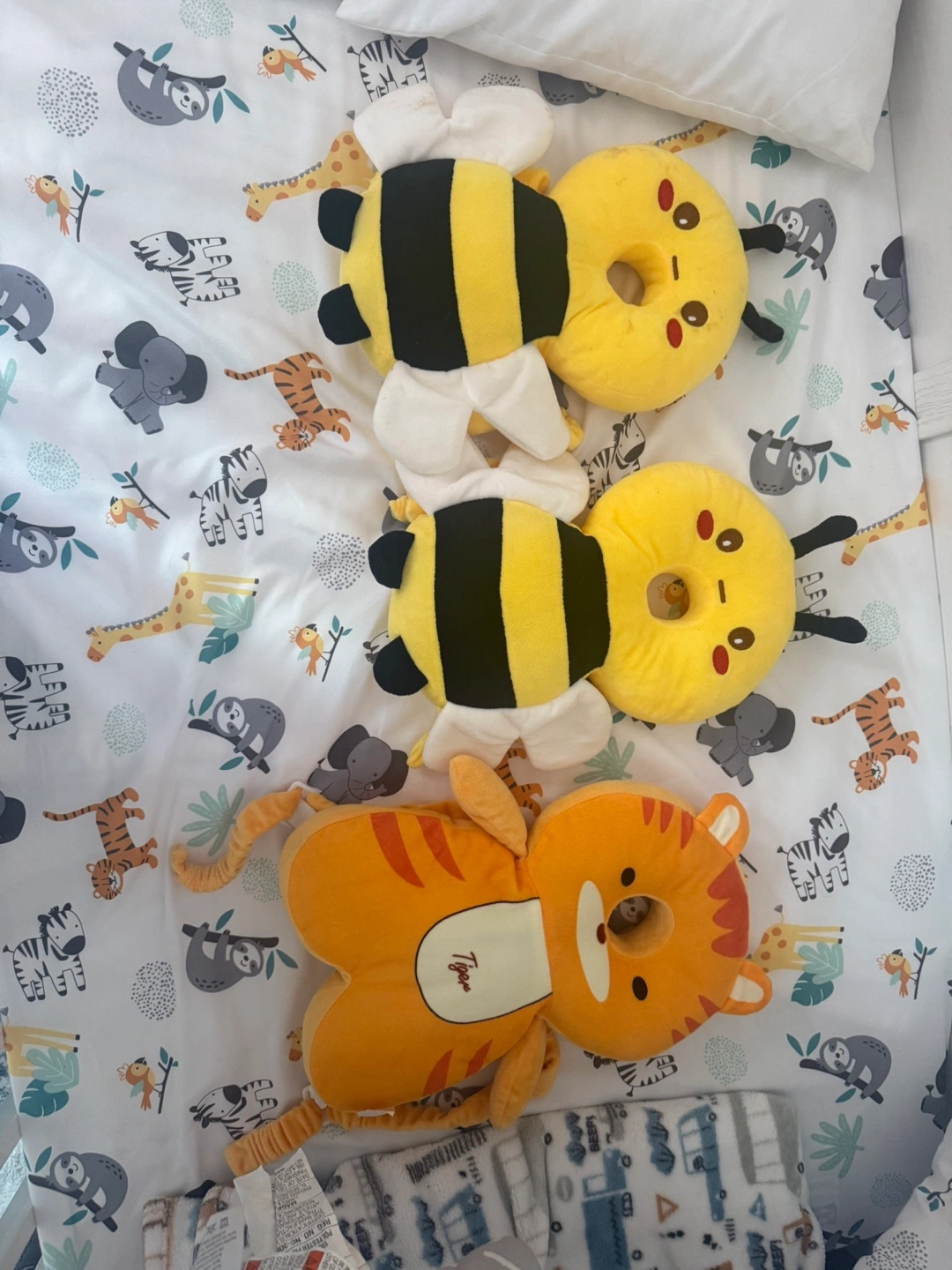 30Protect your little one's head with these adorable baby head protectors! One is designed as a cute bee, and the other as a tiger. They're soft and cushioned to help prevent bumps and bruises as your baby learns to sit and crawl
