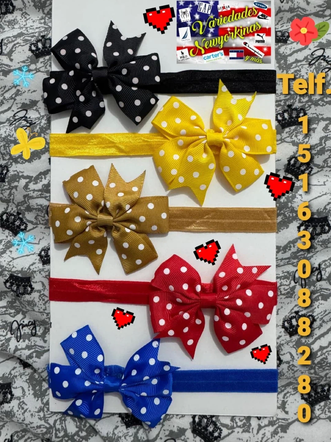 I have a selection of adorable baby headbands for sale! They come in various colors and styles, including polka dots and flower designs. Perfect for dressing up your little one!